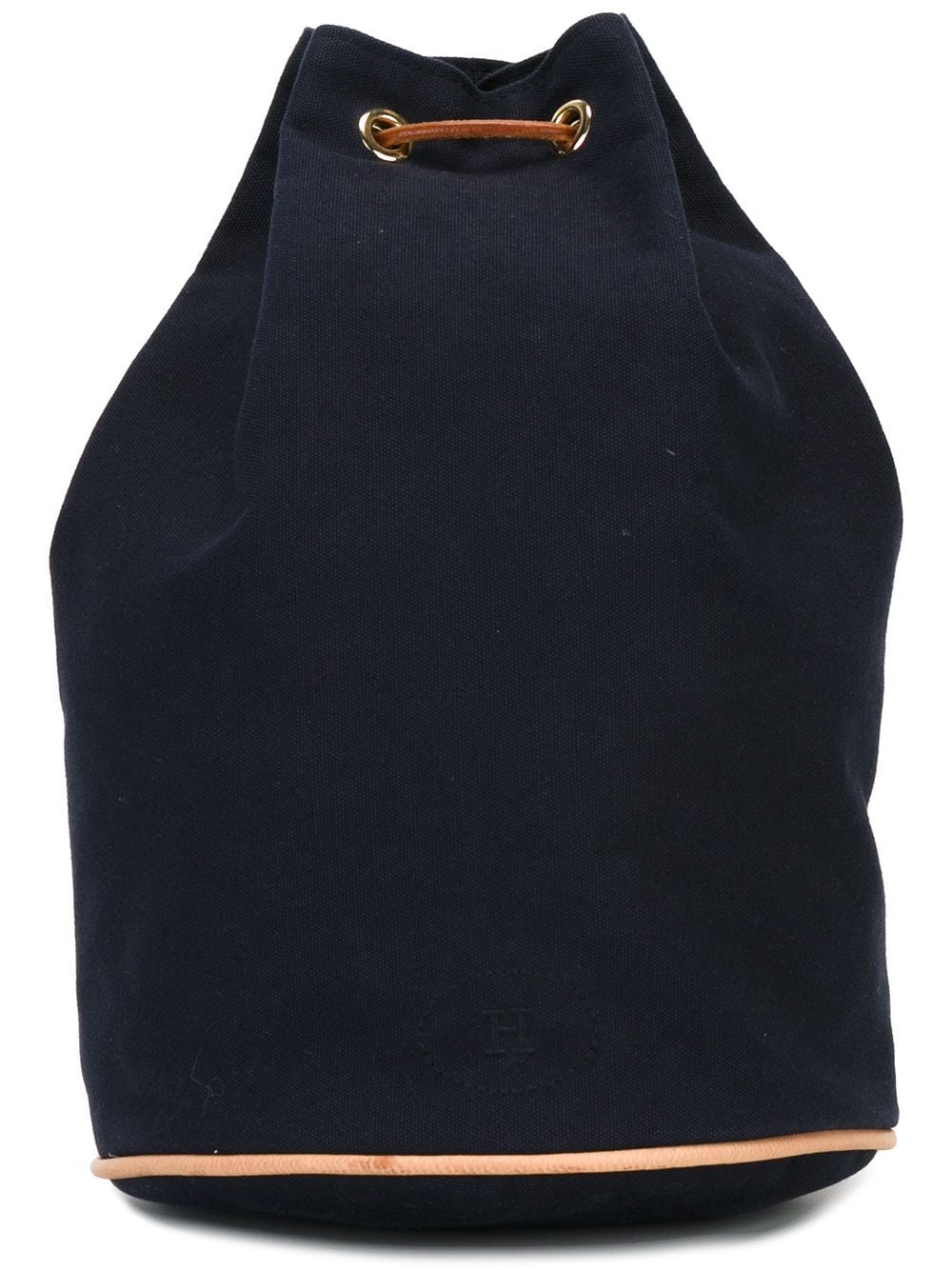 Navy blue cotton and leather drawstring backpack from Hermès Pre-Owned featuring shoulder straps, leather trims, a main internal compartment and an embroidered logo to the front. Please be mindful that this piece has led a previous life, and may tell its story through minor imperfection. Purchasing this item continues its narrative, so you can be confident that you’re making a POSITIVELY CONSCIOUS choice for the planet.