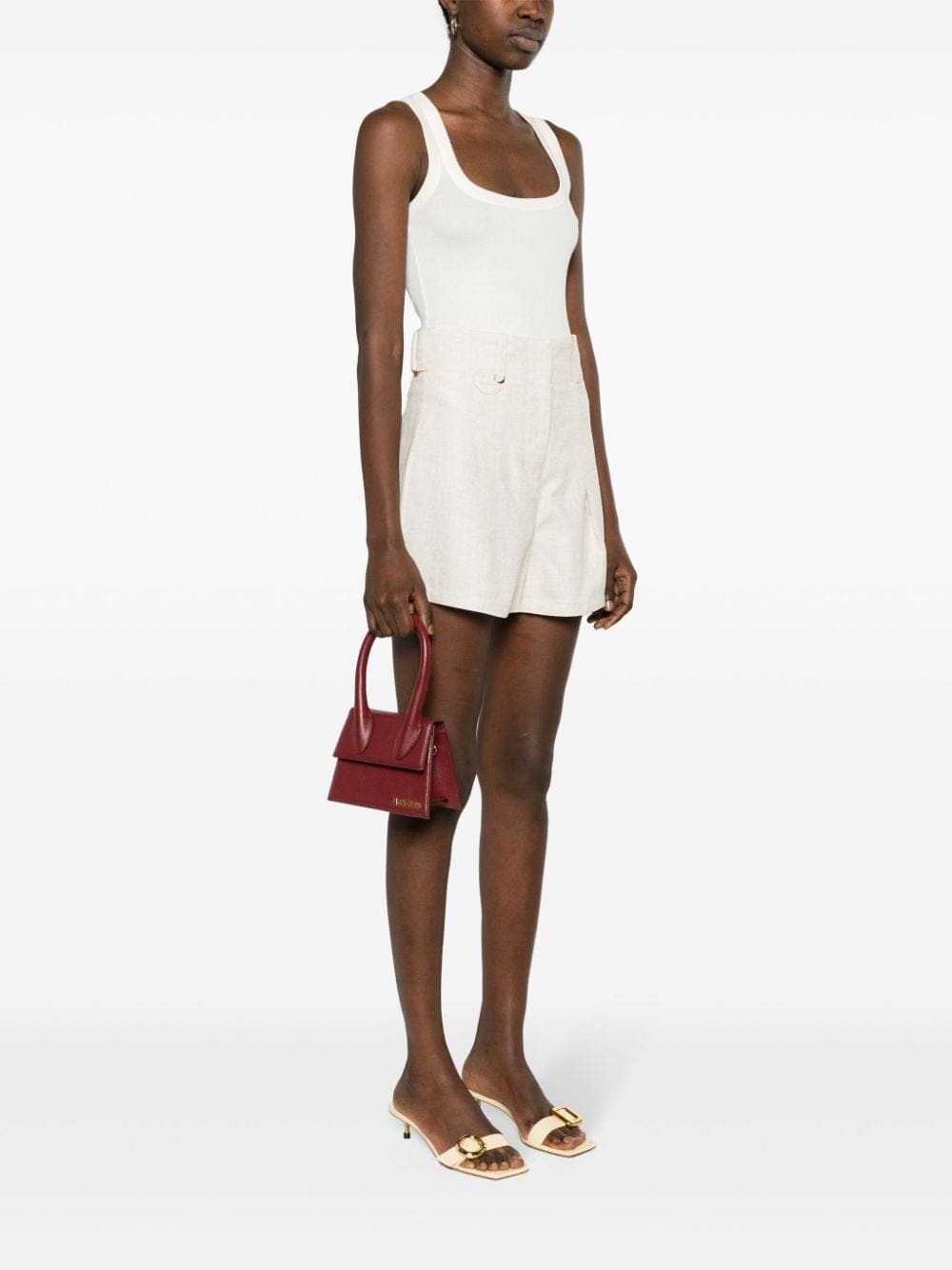 Jaquemus sticks with its joyful and optimistic approach to fashion and presents iterations of some of the brand's most popular mini bags in tune with the upcoming season. Boasting a refined gold-tone plaque at the front, Le Chiquot Moyen boasts a deep burgundy colour and can be worn crossbody style, hanging from the shoulder or handheld thanks to its detachable strap.