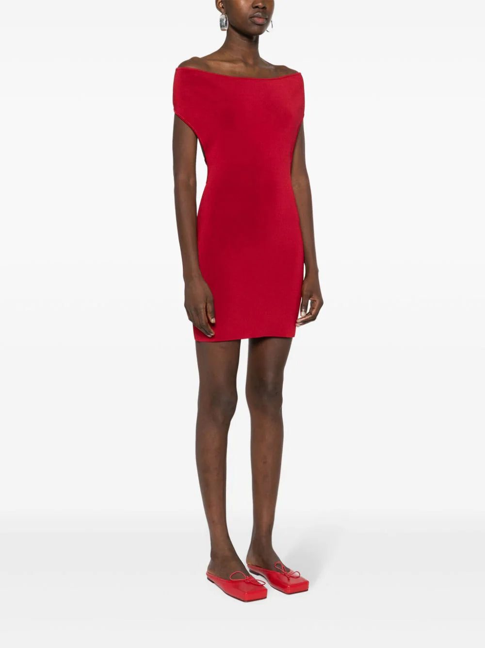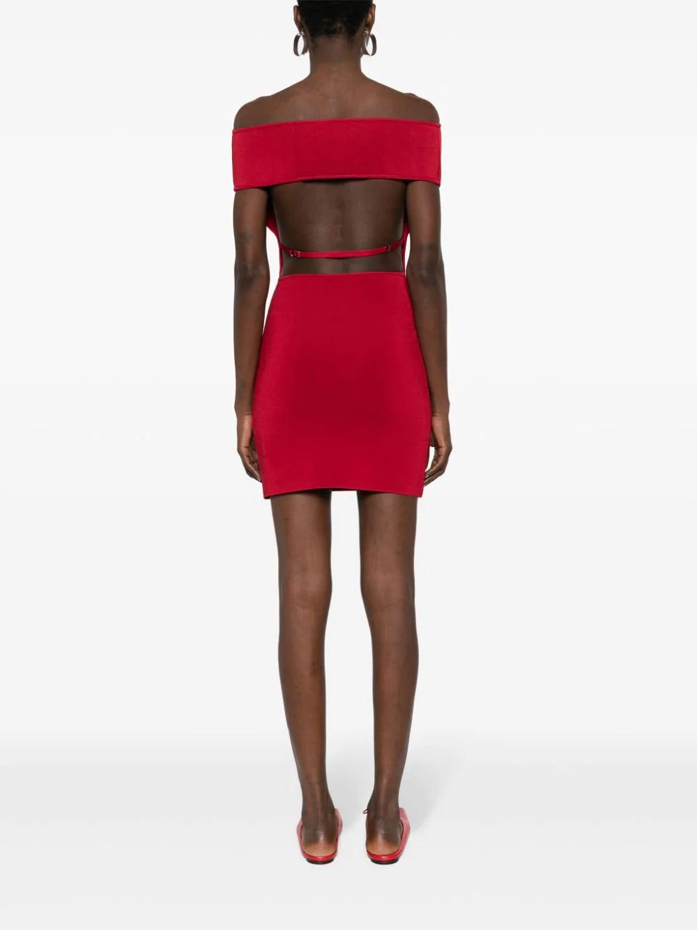 Architectural proportions dominated Jacquemus’ SS24 collection, entitled Les Sculptures – French for ‘The Sculptures’. A case in point, this dark-red La Robe Cubista minidress is made from stretch fabric to a sleek off-shoulder silhouette with an open back. It’s finished with an adjustable lingerie-inspired strap to the rear.