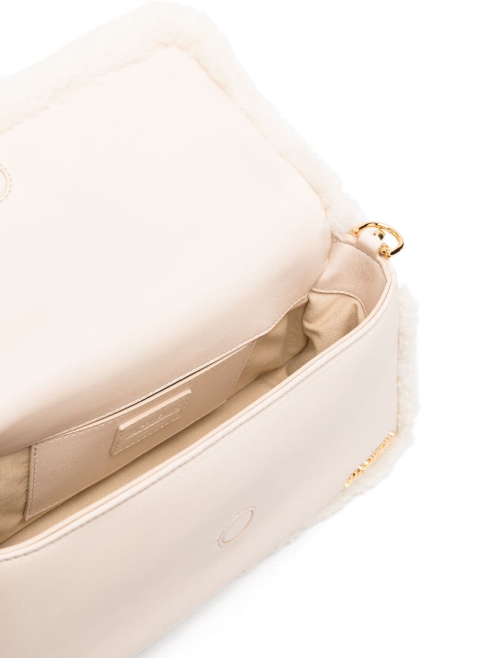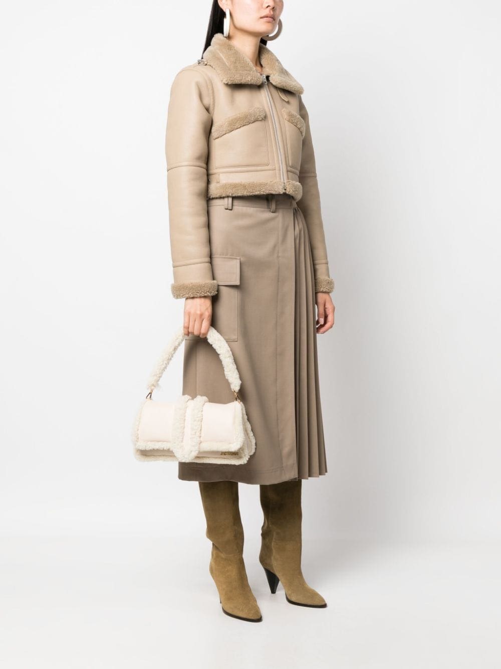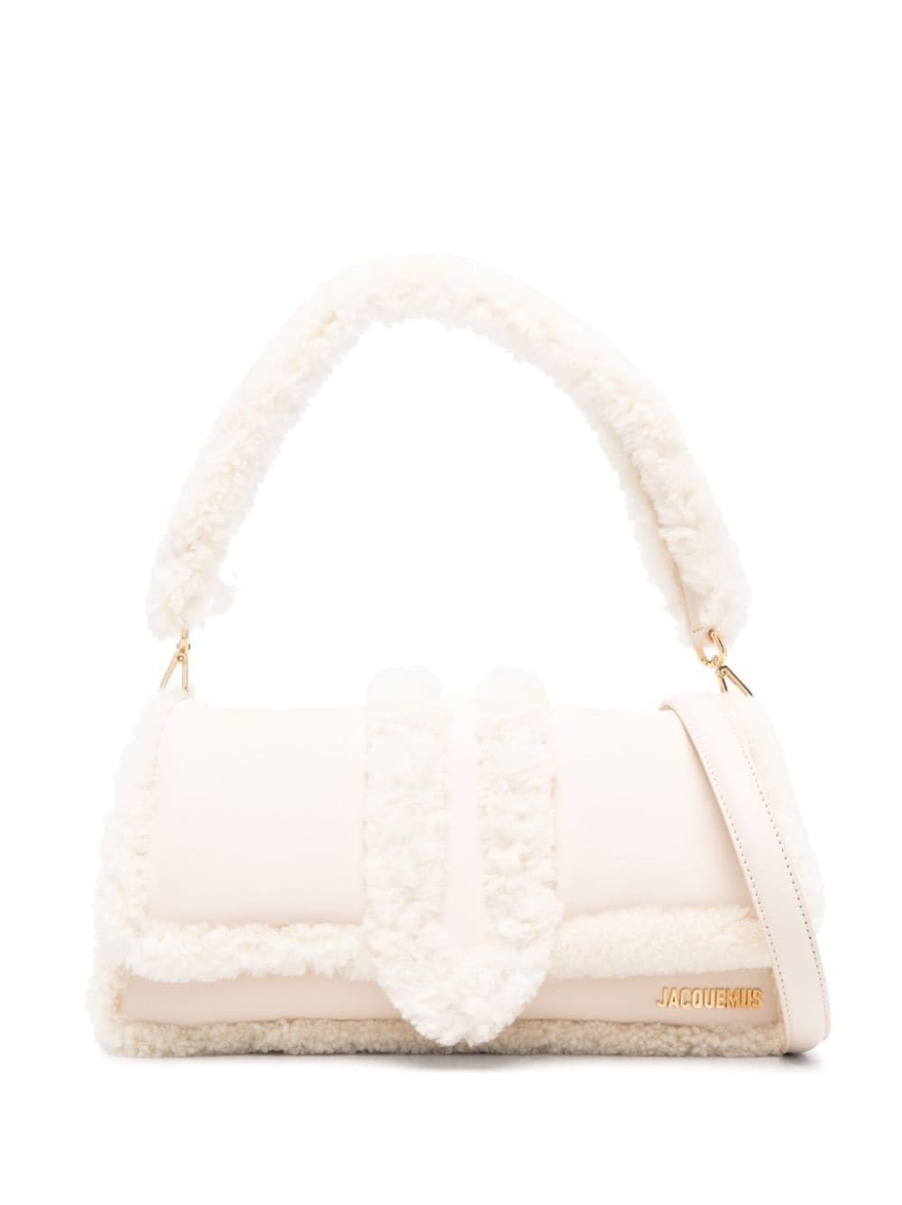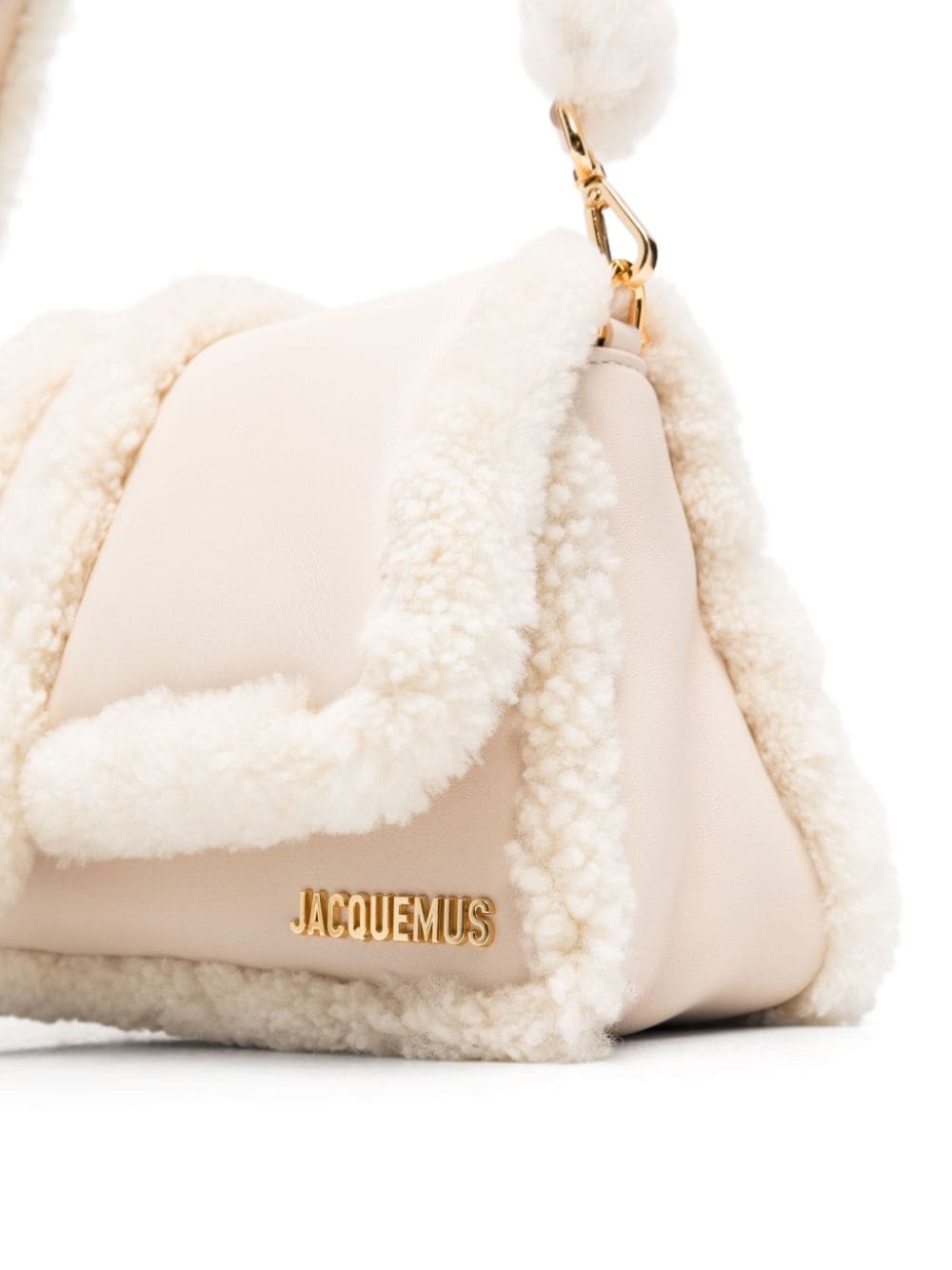 Jacquemus' Le Bambimou silhouette is a demonstration of the label's propensity for structured designs. Presented in a light beige iteration, this shoulder bag is punctuated with a plush shearling trim, lending a softer finish.