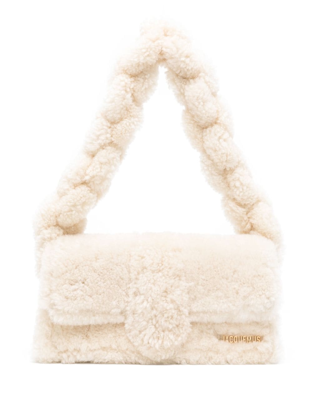 A tactile take on a Jacquemus signature, this Le Bambidou bag is crafted to a structured silhouette and covered in plush shearling. The braided shoulder strap and gold-tone logo plaque point to the label's detail-oriented approach to design.