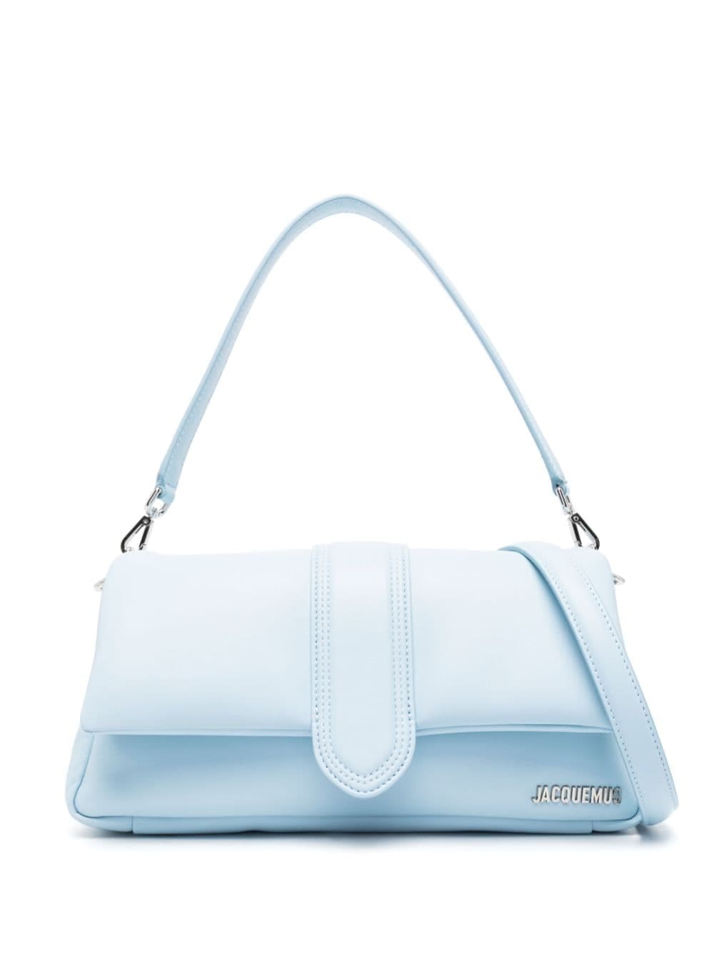 A padded iteration of one of the brand's signature styles, this Le Bambimou shoulder bag demonstrates Jacquemus' penchant for playful accessories. It’s crafted from smooth light-blue leather to a boxy silhouette and adorned with polished gold-tone logo hardware.