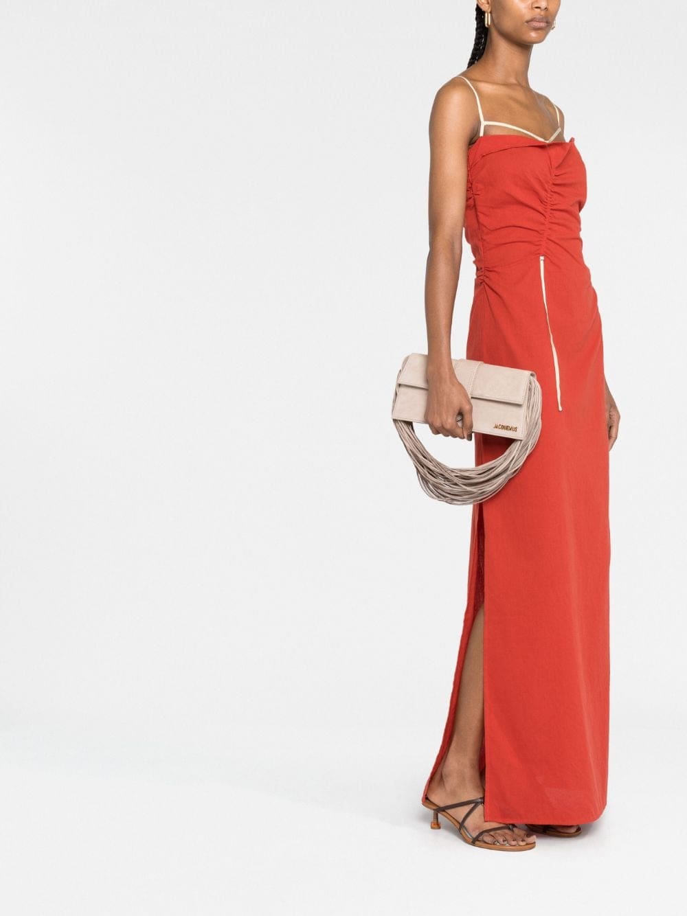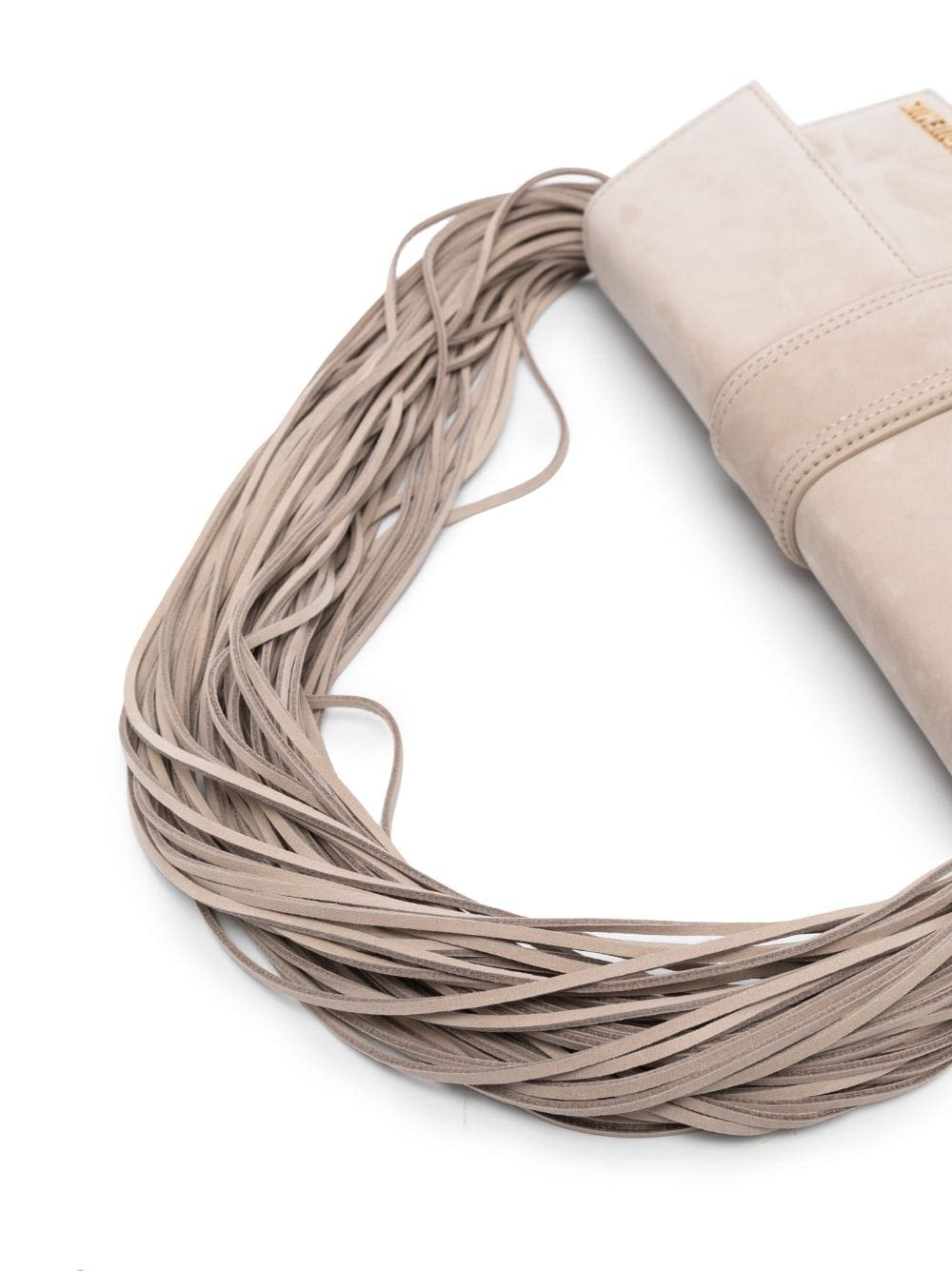 Jacquemus' penchant for innovative design details is evident on this Le Bambino bag: its shoulder strap is made from tonal leather threads. It's crafted to a structured, rectangular shape and enriched with the brand's signature gold-tone logo plaque.