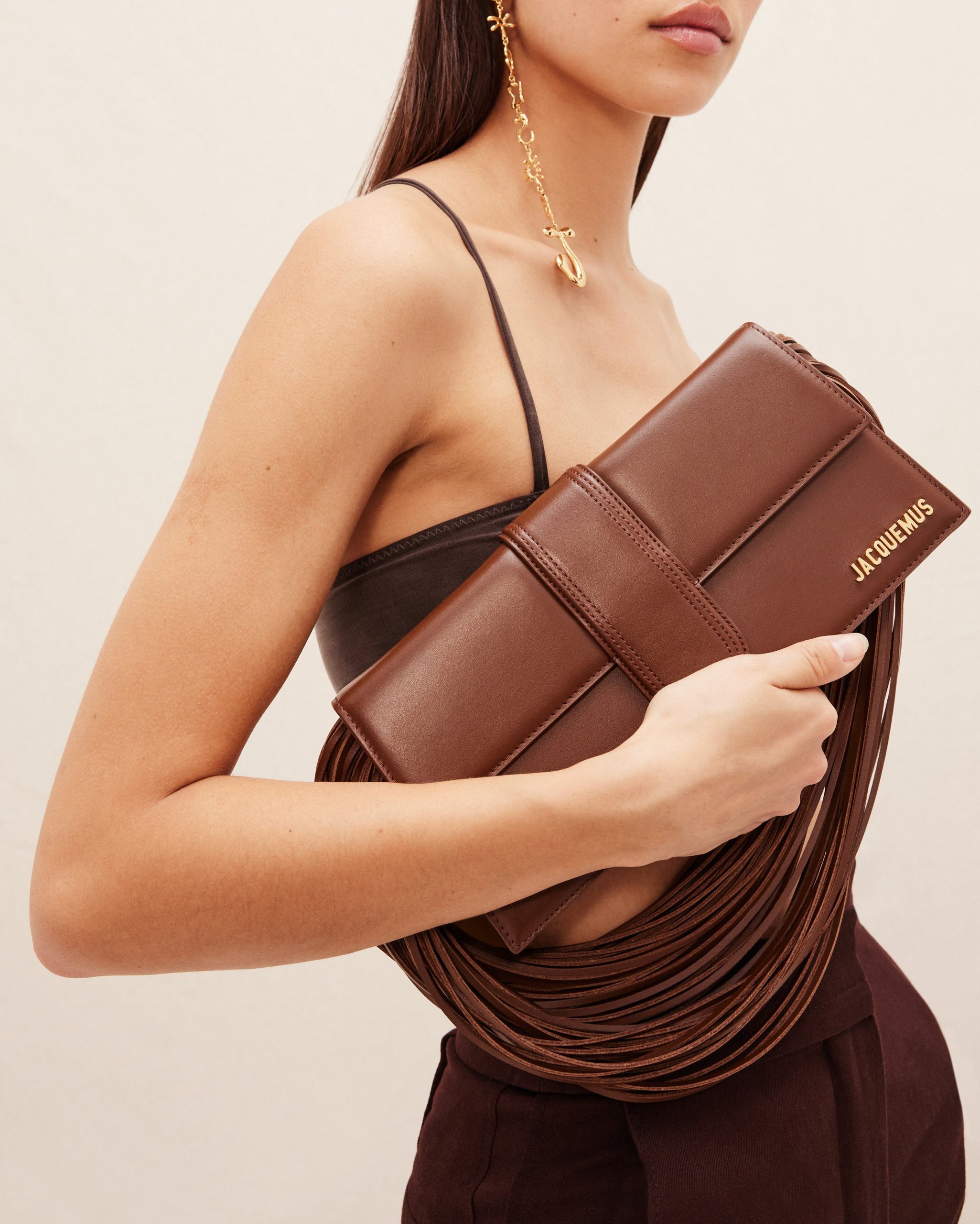 Jacquemus Le Bambino long Ficiu Strand strap flap bag.