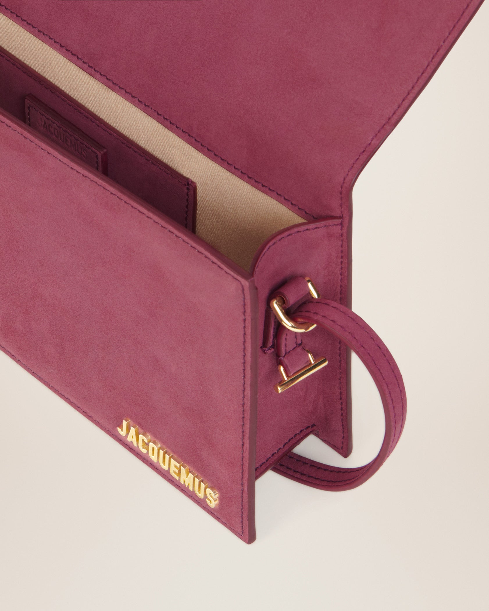 - Gold metal logo and hardware
