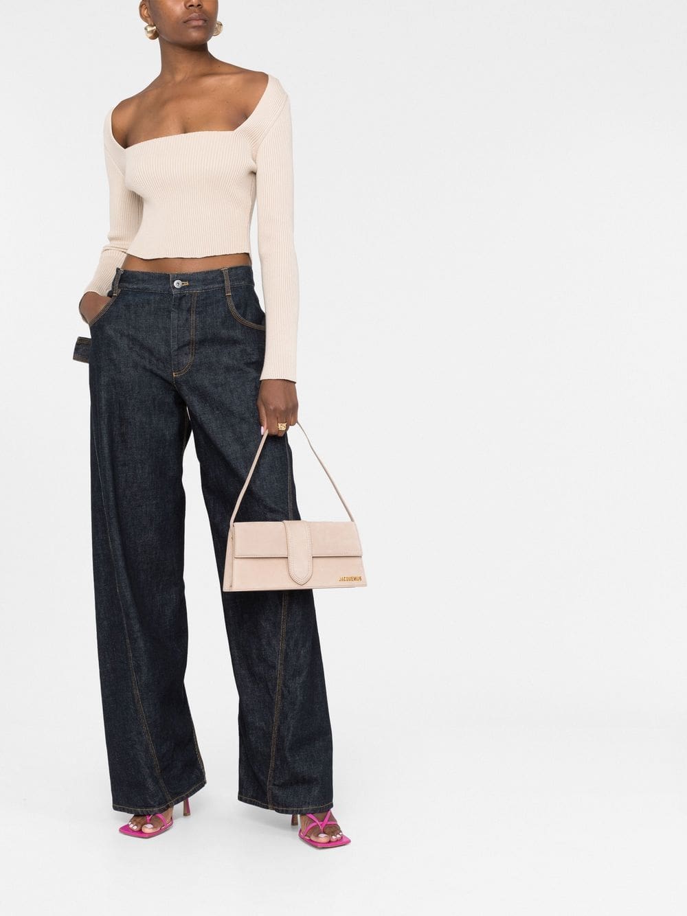 A larger iteration of one of their signature styles, Jacquemus' Le Bambino amplifies the brand's penchant for minimal, structured handbags. Crafted from calf leather with a single shoulder strap, the design is adorned with gold-tone logo lettering to the front.