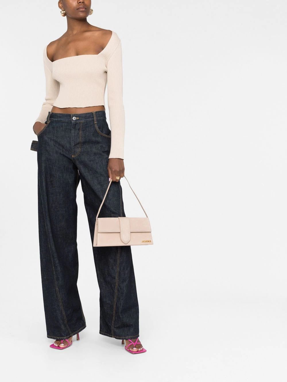 A larger iteration of one of their signature styles, Jacquemus' Le Bambino amplifies the brand's penchant for minimal, structured handbags. Crafted from calf leather with a single shoulder strap, the design is adorned with gold-tone logo lettering to the front.