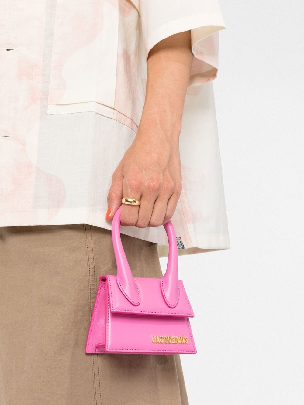 Jacquemus updates its iconic Le Chiquito mini bag in a bright fuchsia hue. Designed in a structured trapeze silhouette, this scaled-down style is decorated with the brand's gold-tone logo lettering to the front.