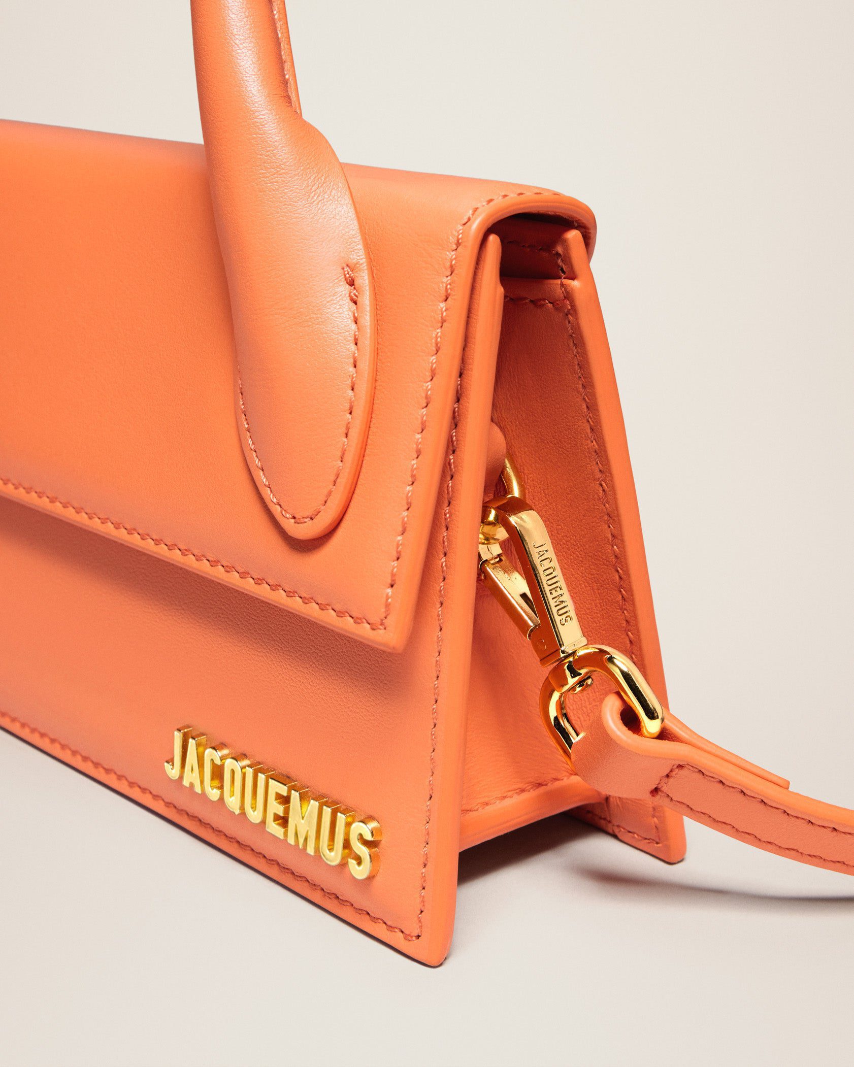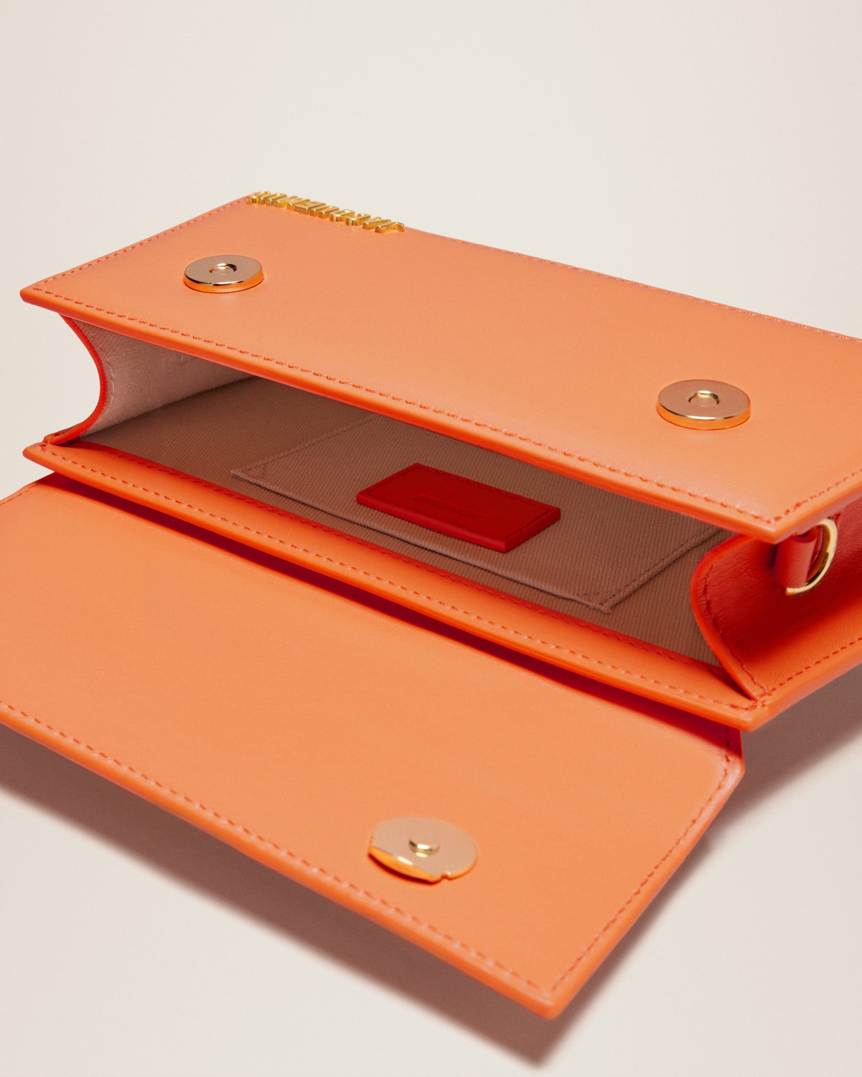 - Gold metal logo and hardware