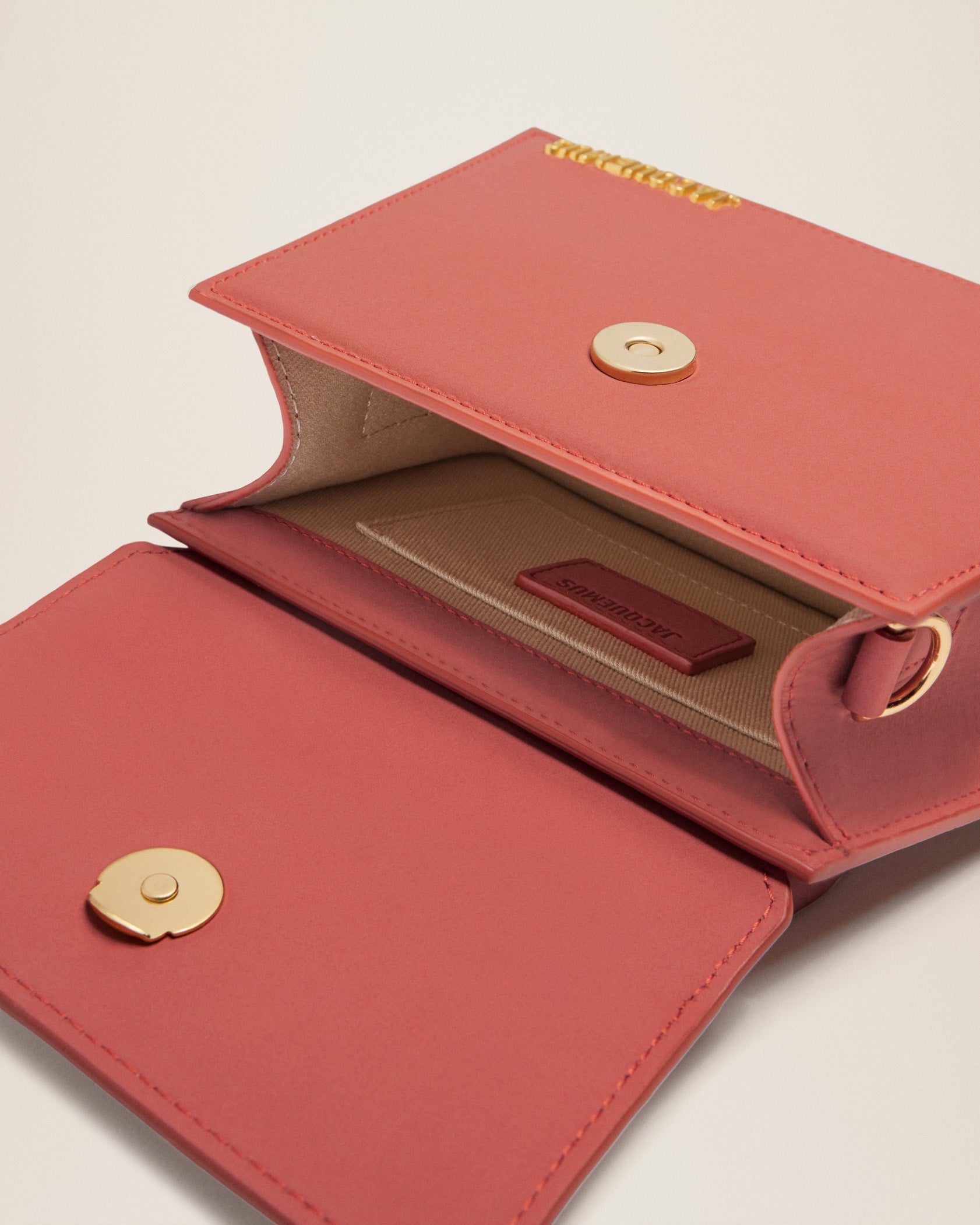 - Gold metal logo and hardware