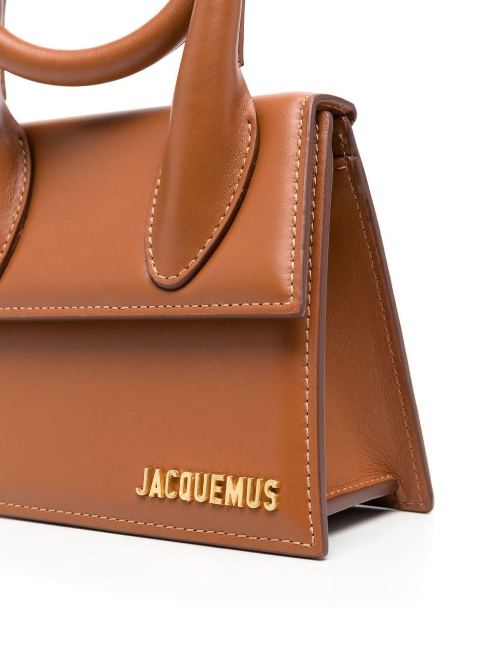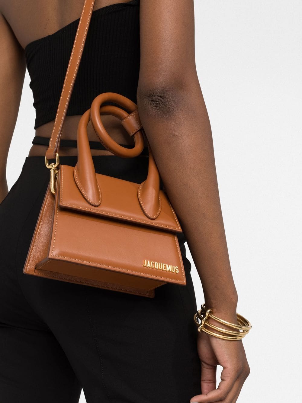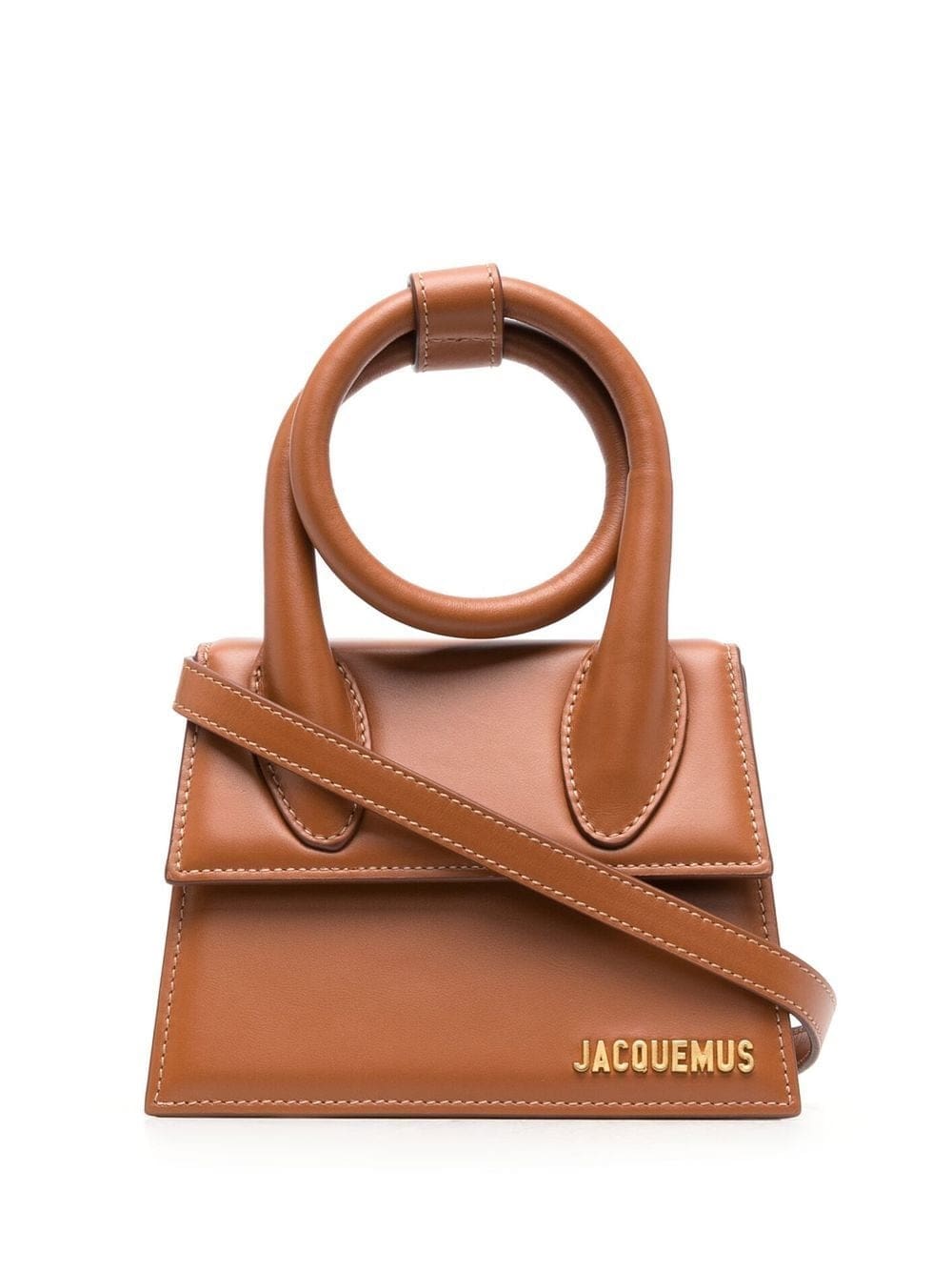 Jacquemus updates its iconic Le Chiquito bag in a chestnut brown hue. Designed in a structured trapeze silhouette and a twisted top handle, this Neud style is simply adorned with the brand's gold-tone logo lettering to the front.
