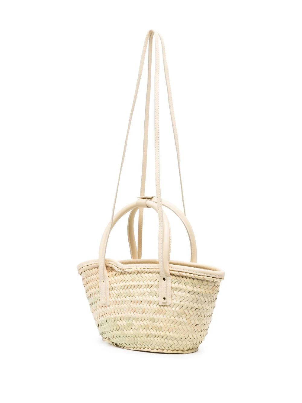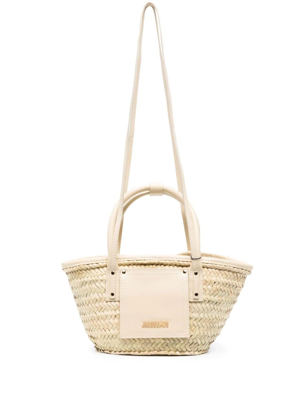 Jacquemus' innovative approach to minimalist design is showcased on this tote bag, which is constructed from woven straw with monochromatic trim detailing. The gold-tone hardware logo lettering at the front adds an opulent edge to the design.