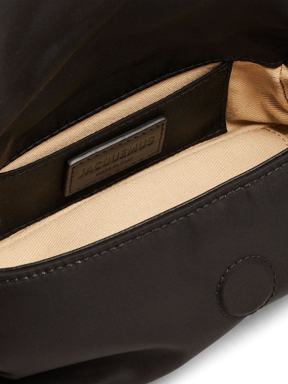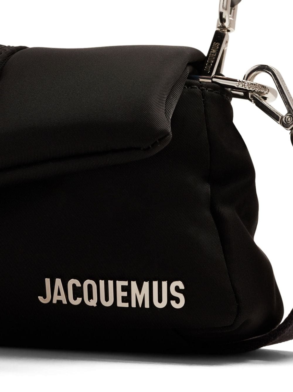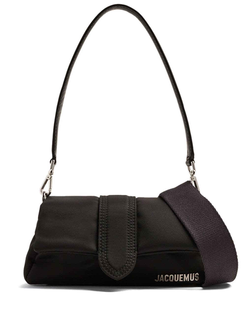 Jacquemus' Le petit Bambimou bag is shaped with soft padding that echoes the billowy silhouette of a cloud. Rendered in black, it is stamped with the label’s unmistakable lettering in silver-tone metal.