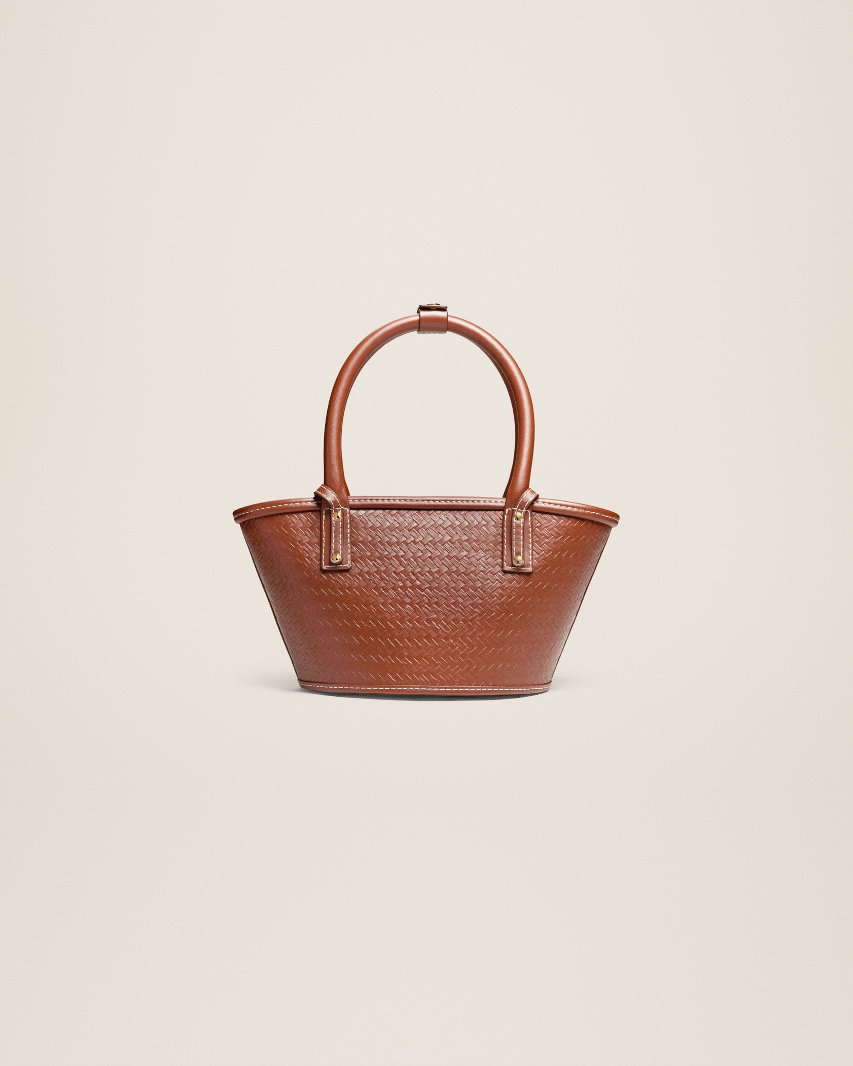 Mini leather beach basket bag- Smooth leather basket bag with imitation palm