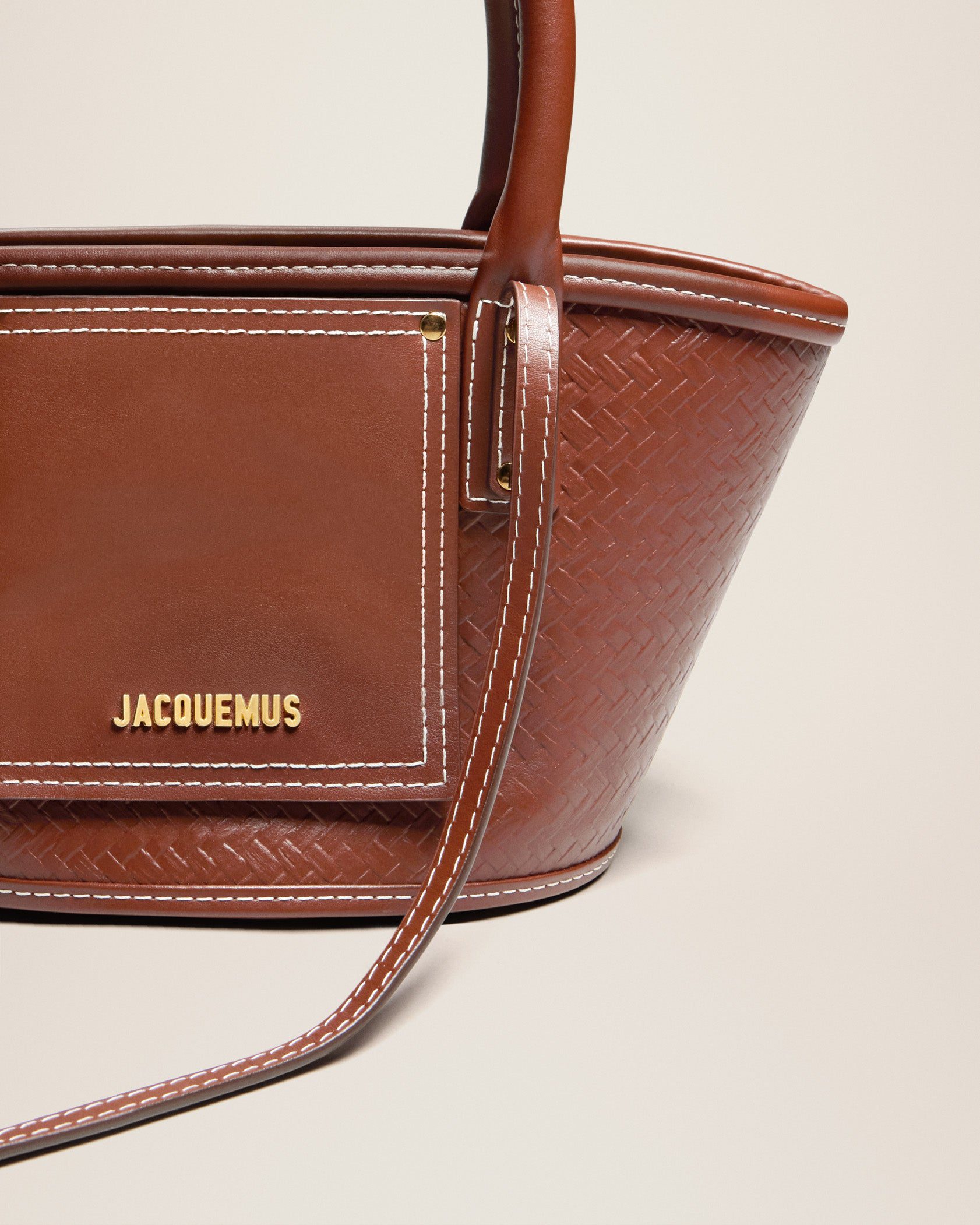 - Gold metal logo and hardware