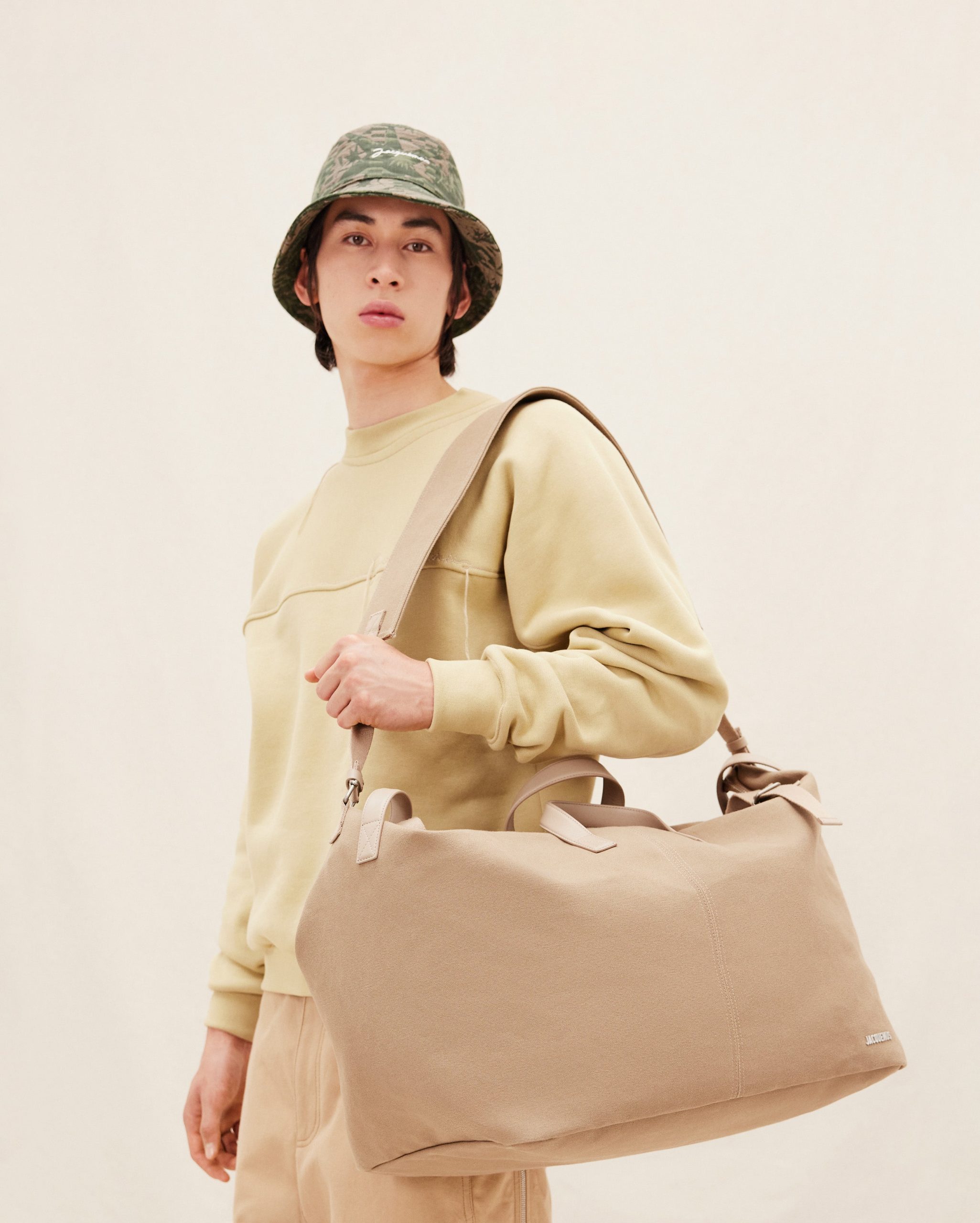 - Cotton canvas bag with leather details