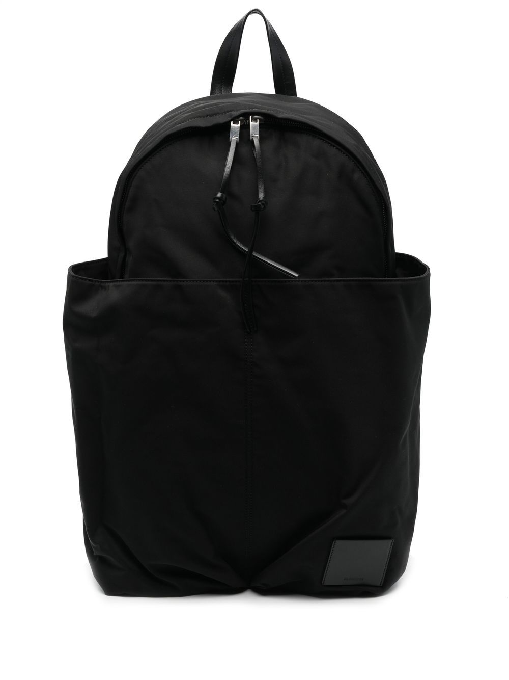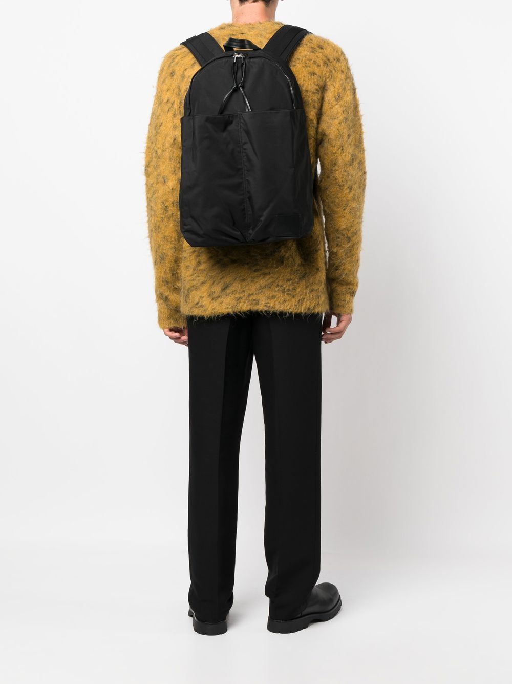 black calf leather logo patch to the front front two-way zip fastening adjustable shoulder straps front pouch pocket main compartment