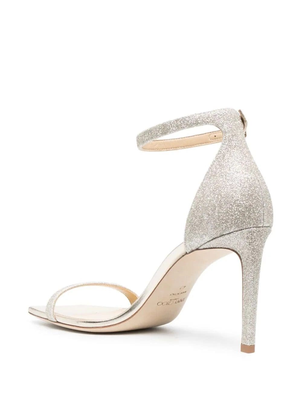 Jimmy Choo's Alva leather sandals are sleek yet striking. Featuring a sharp square toe and thin straps, this iteration is encrusted with silver-tone glitter for a light-reflecting finish as it sits on a pin-thin 85mm stiletto heel.