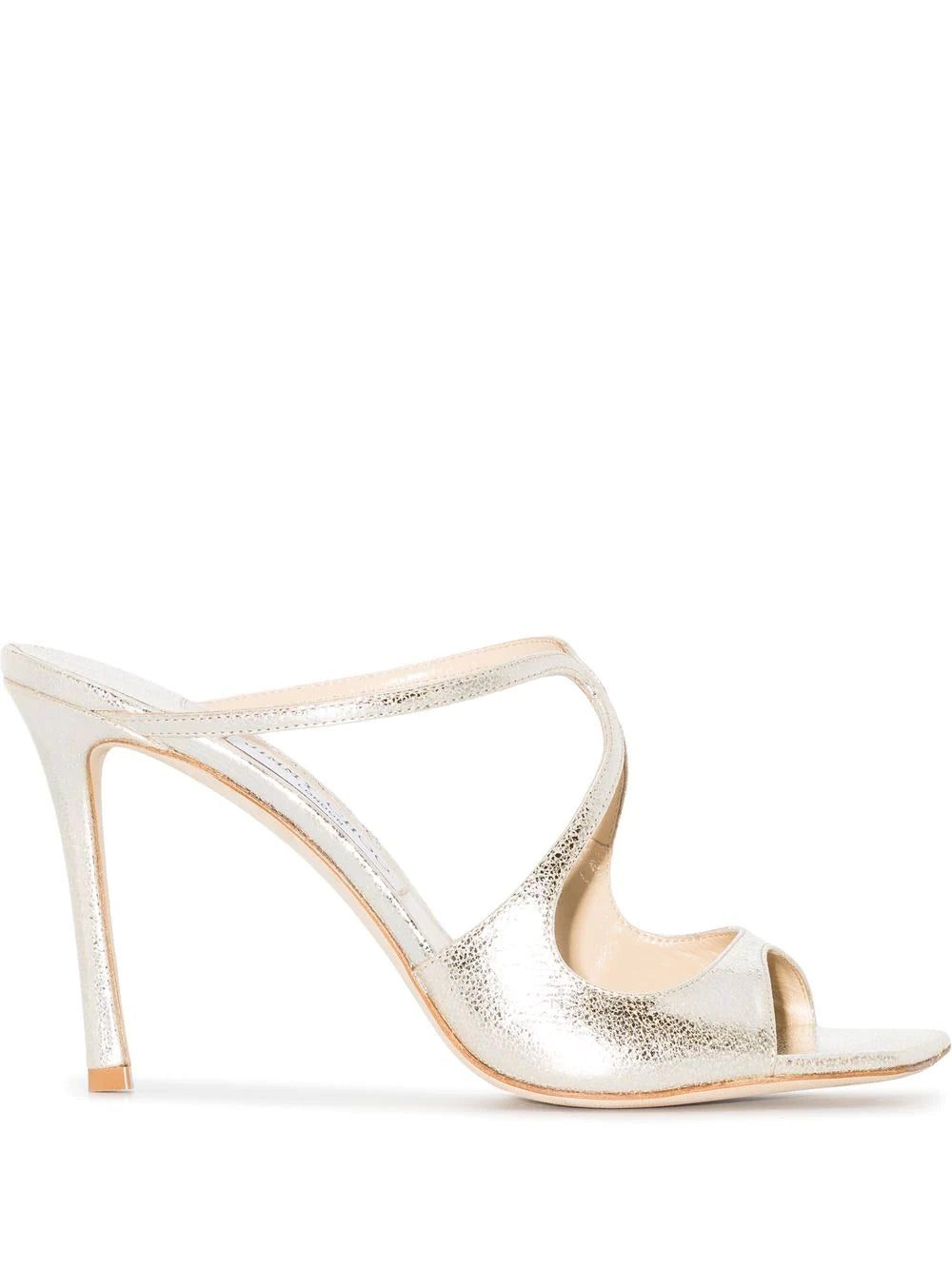 Anise strappy sandals from JIMMY CHOO featuring champagne, leather, high stiletto heel, crossover strap detail, open toe and branded insole.