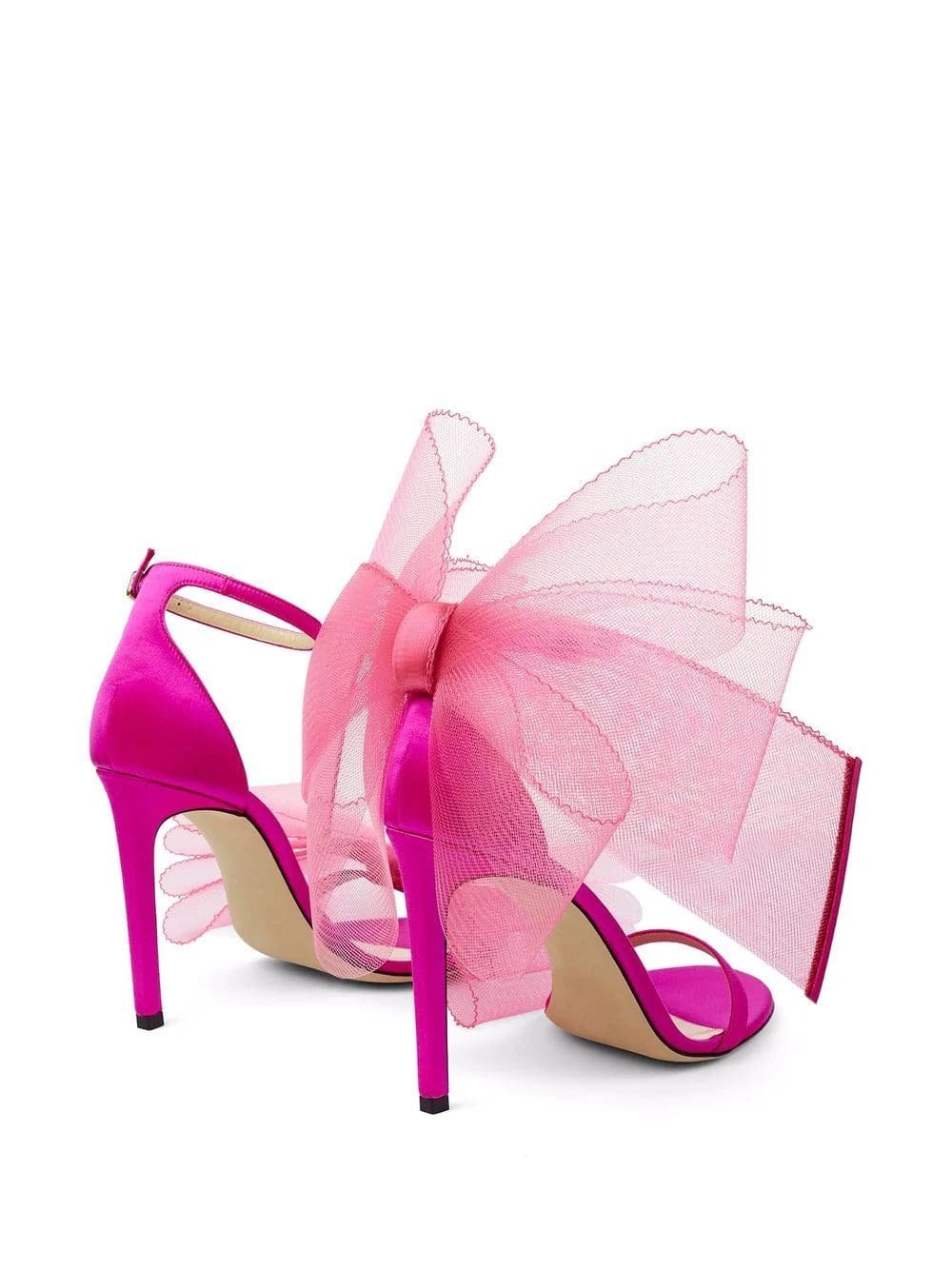 Jimmy Choo showcases the brand's signature glamorous style in this pair of sandals. Featuring a tonal pink colourway, large-scale asymmetrically placed bows add an innovative edge.