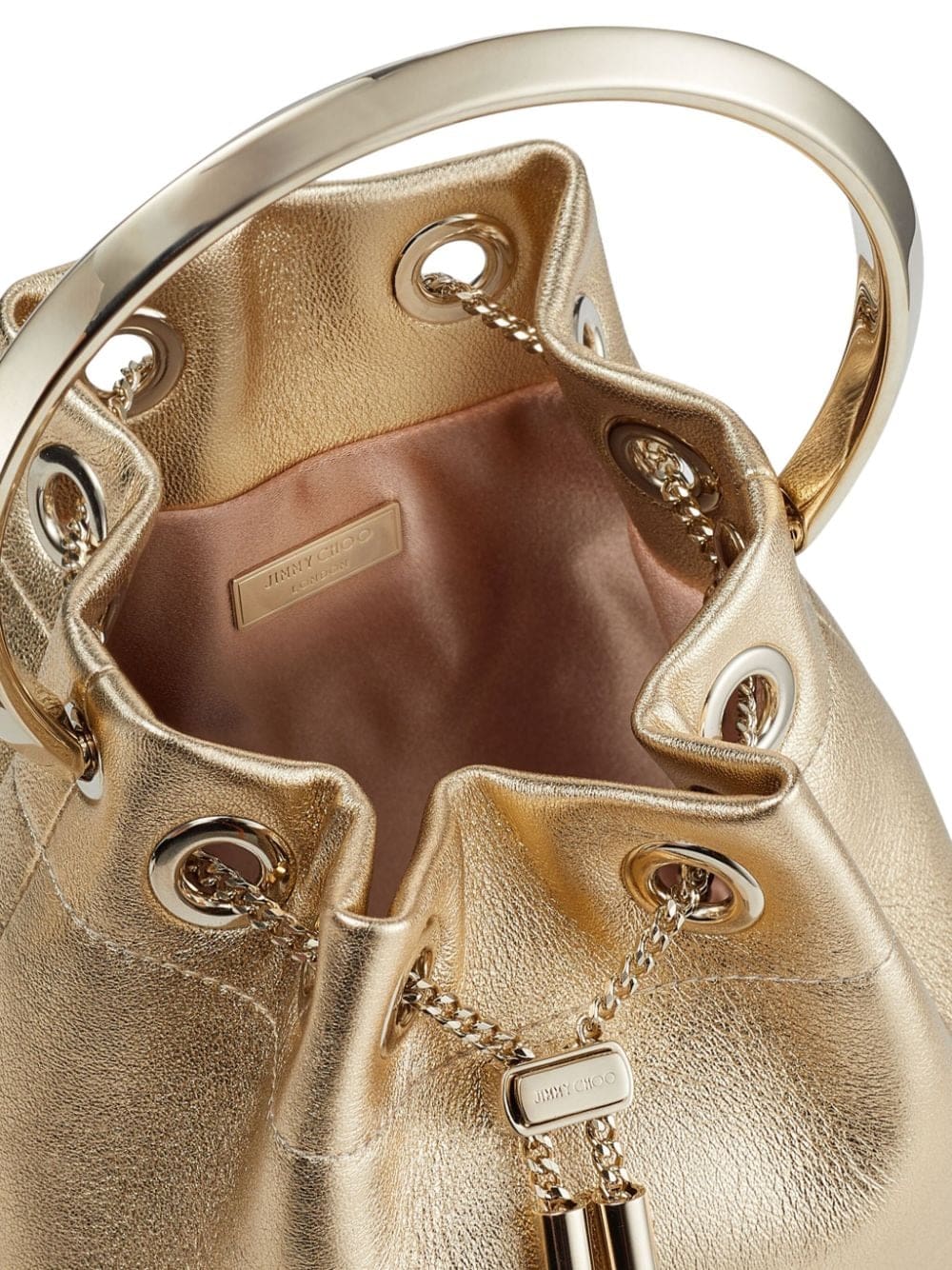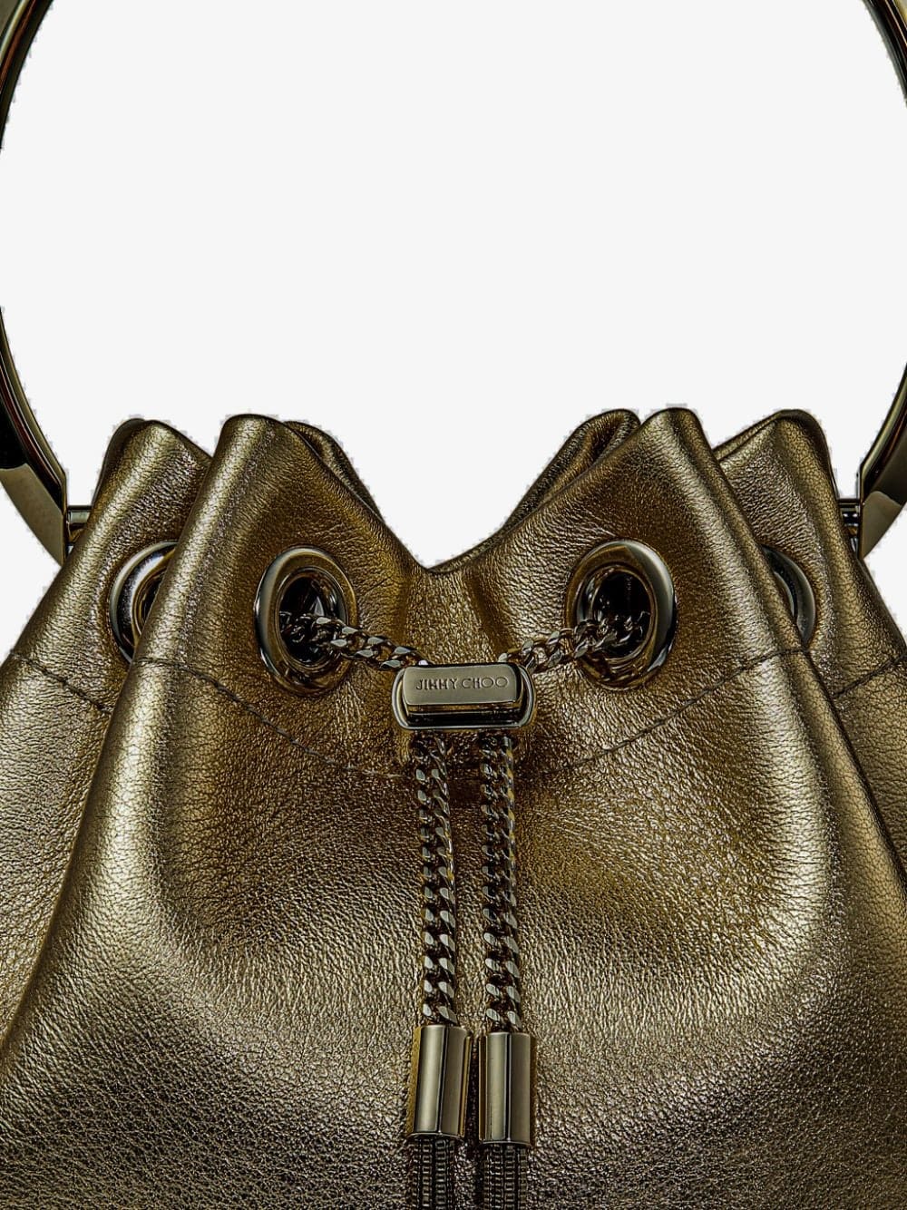 Jimmy Choo Bon Bon metallic-finish bucket bag