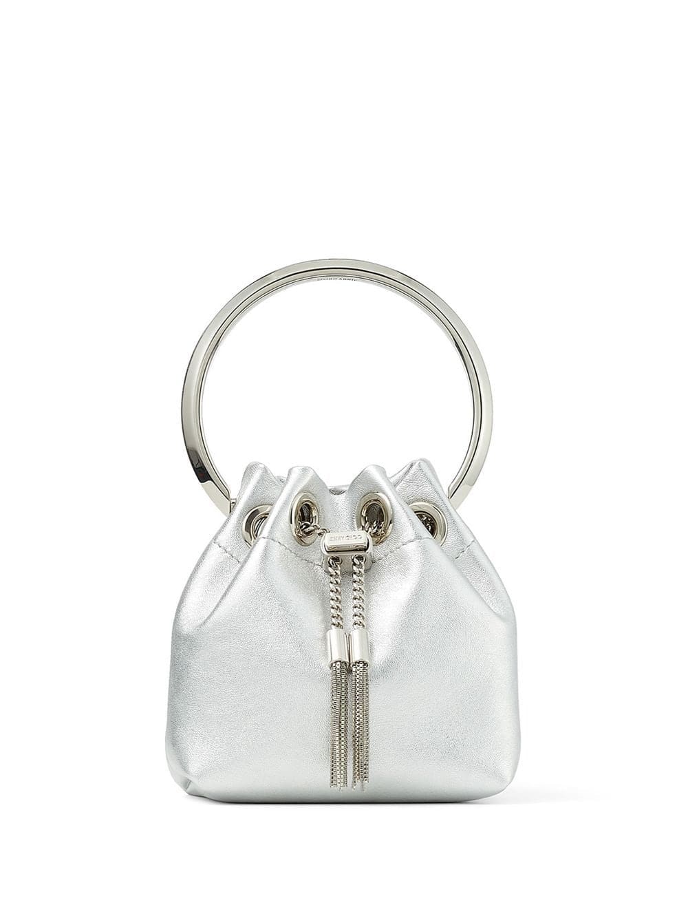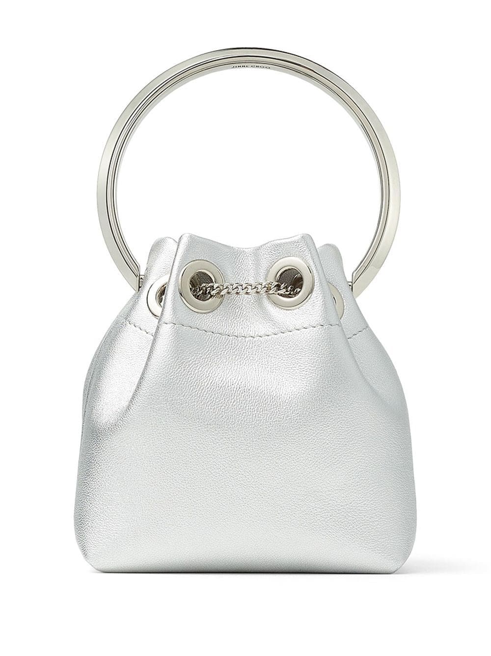 silver metallic finish silver-tone hardware drawstring fastening main compartment single rounded top handle detachable chain-link shoulder strap