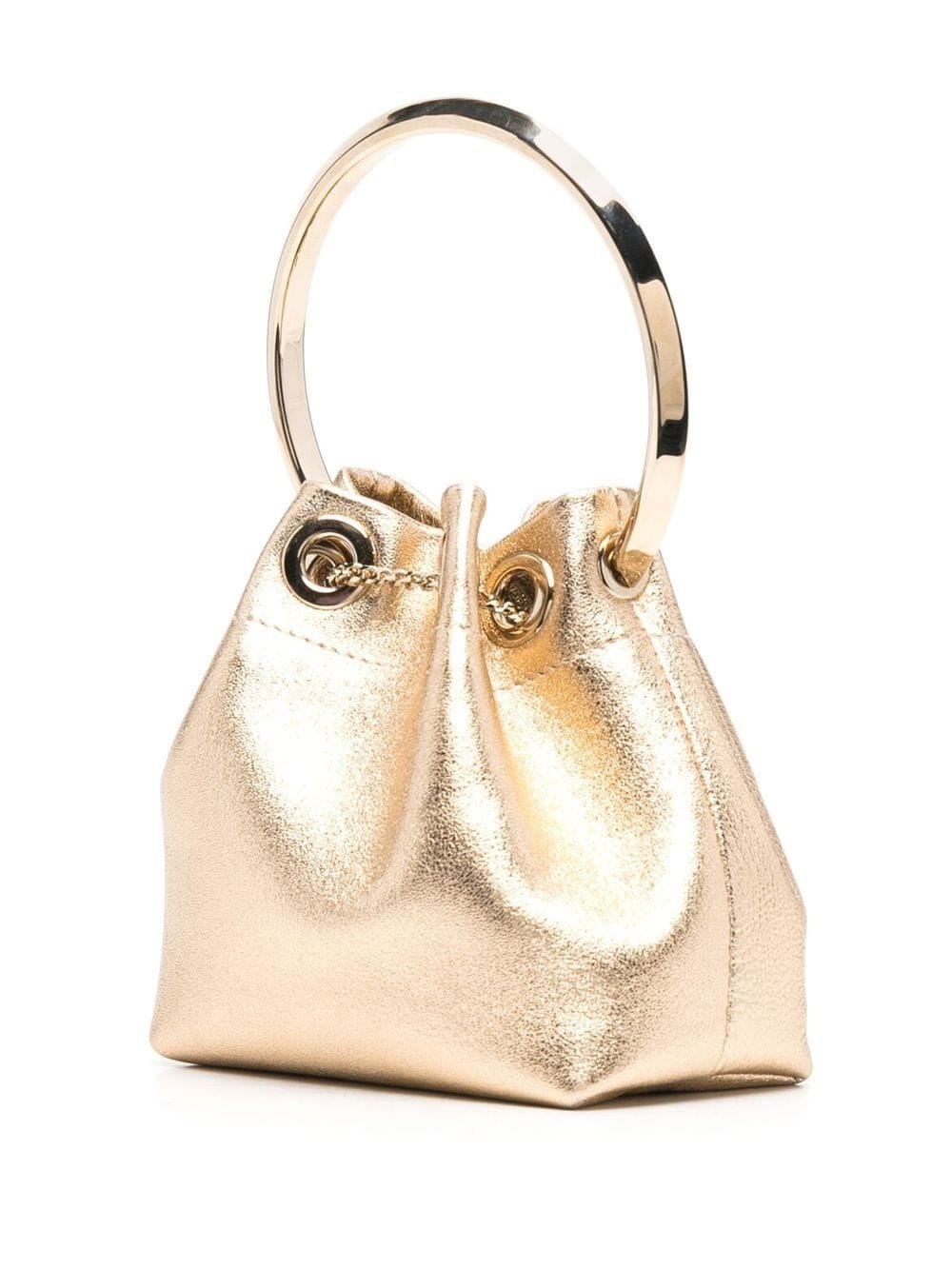 A recognisable style from Jimmy Choo, the Bon Bon bag is mainly defined by its bucket design and rounded top handle. Arriving in a shimmering gold-tone shade, this iteration stands out with polished gold-tone hardware.