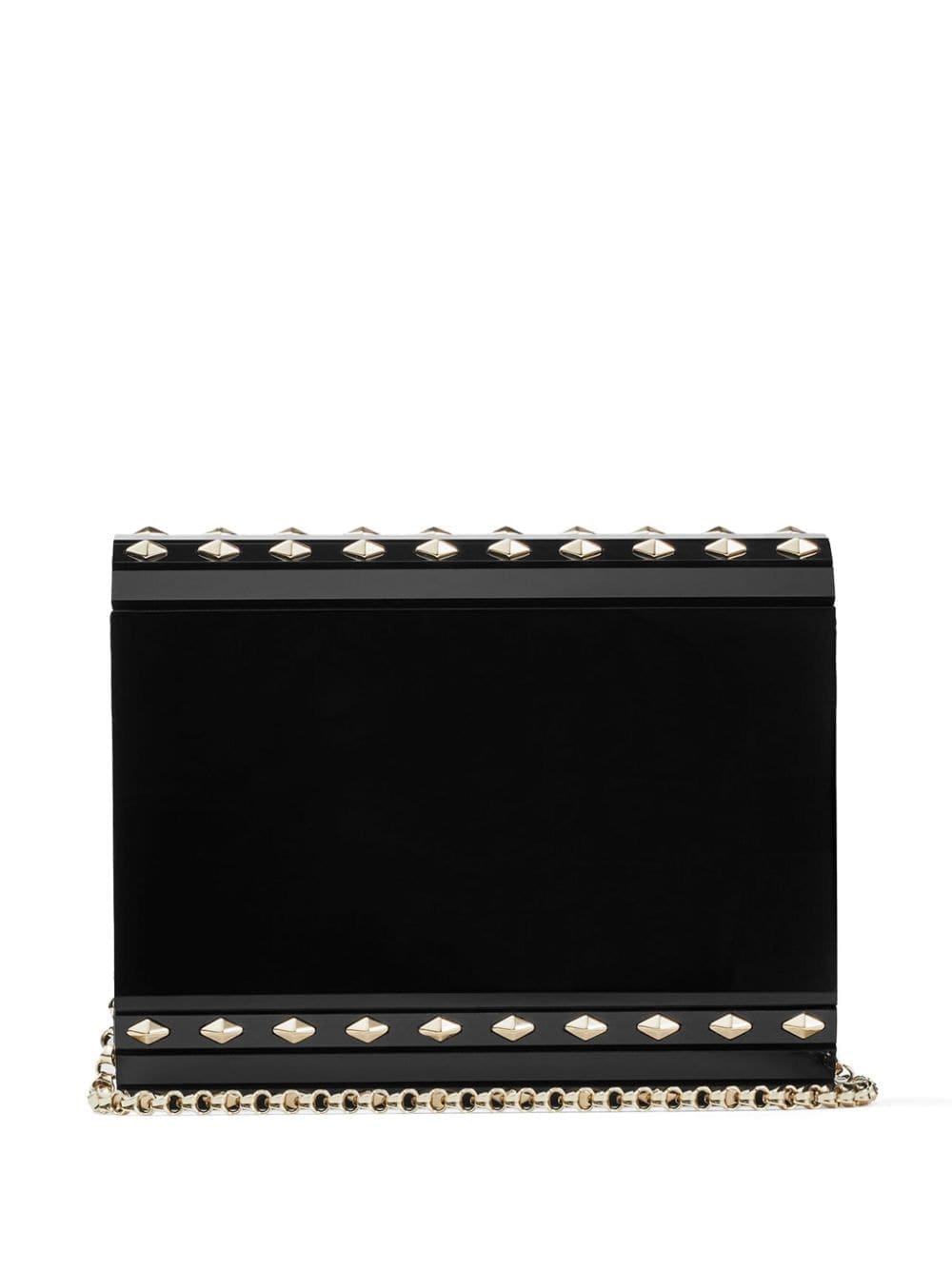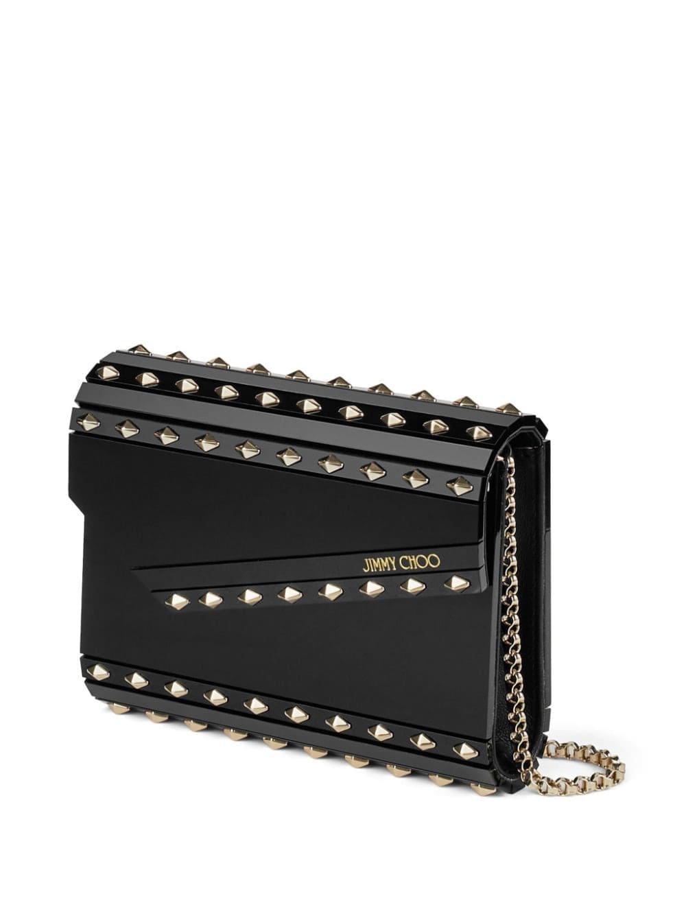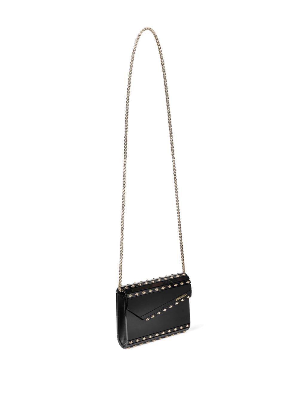 A signature style, Jimmy Choo's Candy clutch bag is back - this time, adorned with silver-tone Rockstud detailing throughout. This model is designed with a sharp asymmetric flap and comes with a delicate chain strap.