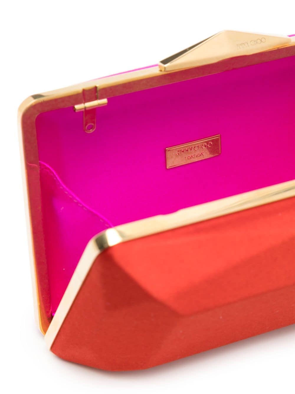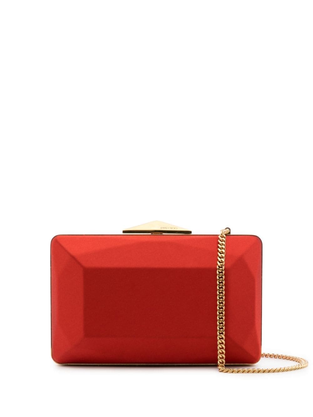 Rendered in a playful two-tone design, this box-style Diamond clutch bag from Jimmy Choo gets its name from its faceted shape. It's made in Italy from lustrous satin and elevated with polished gold-tone hardware.