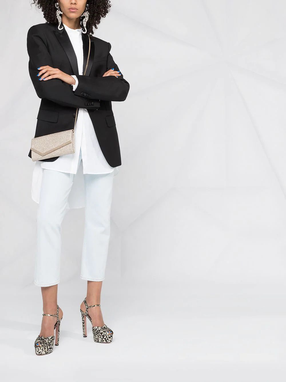 The Emmie clutch is a glamorous party accessory. Fashioned in gold and silver tones, it can be either carried on grip or through a delicate matching chain, which is optional and you can completely remove. With a geometric metal trimmed flap, this accessory features a magnetic closure, a main compartment with interior card slots, a zipped pocket, an embossed logo stamp, matching gold-tone hardware and logo to the front.