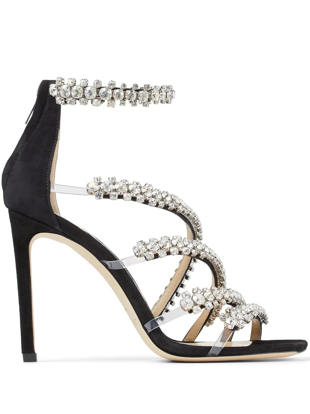Transparent strap detailing creates a floating effect for the crystal embellishment on these Josefine sandals from Jimmy Choo. Designed to catch the eye, this pair boasts a dramatic silhouette thanks to the high stiletto heel.