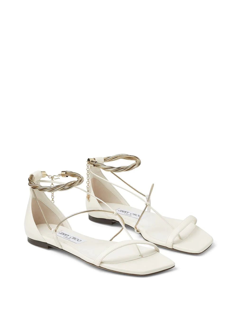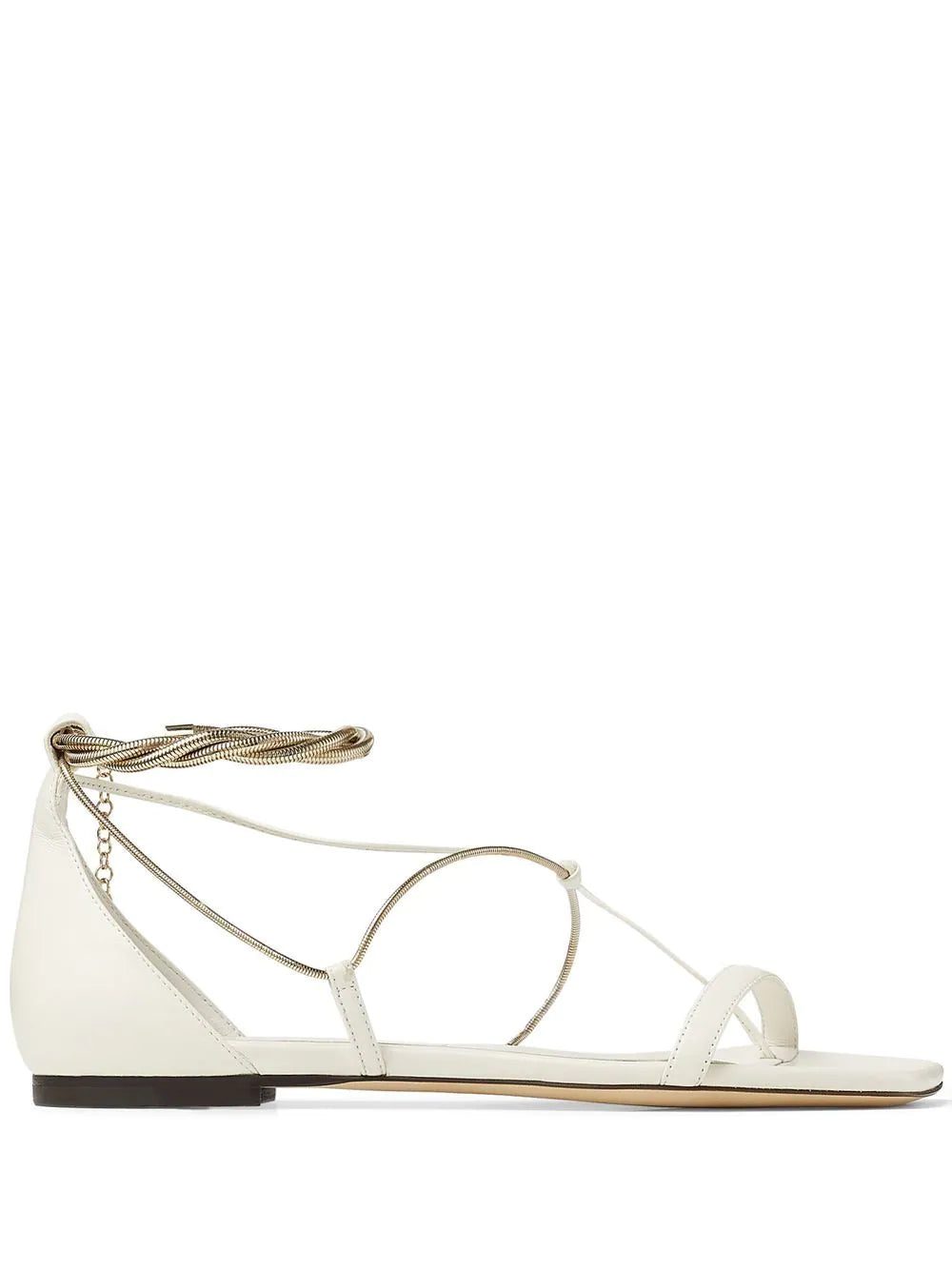 Casual glamour defines the Oriana sandals, which see Jimmy Choo elevating a flat pair with refined detailing. The tonal white design and minimalist silhouette allow for the gold-tone chains to take centre stage, making for an elegant finish.