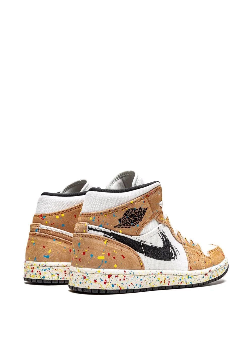 And Jordan Kids strikes again - in a new colourway. This mid-top Air Jordan 1 comes dressed in a 'sail', black, 'cider', and 'chile red' colour combination. First, it comes with paint splatter throughout the entire upper and midsole in multiple shades, the Swoosh logo is formed by black paint strokes while the same shade covers the liner, Wings, and rubber outsole. Finally, a 'sail' midsole and white laces finish the look.