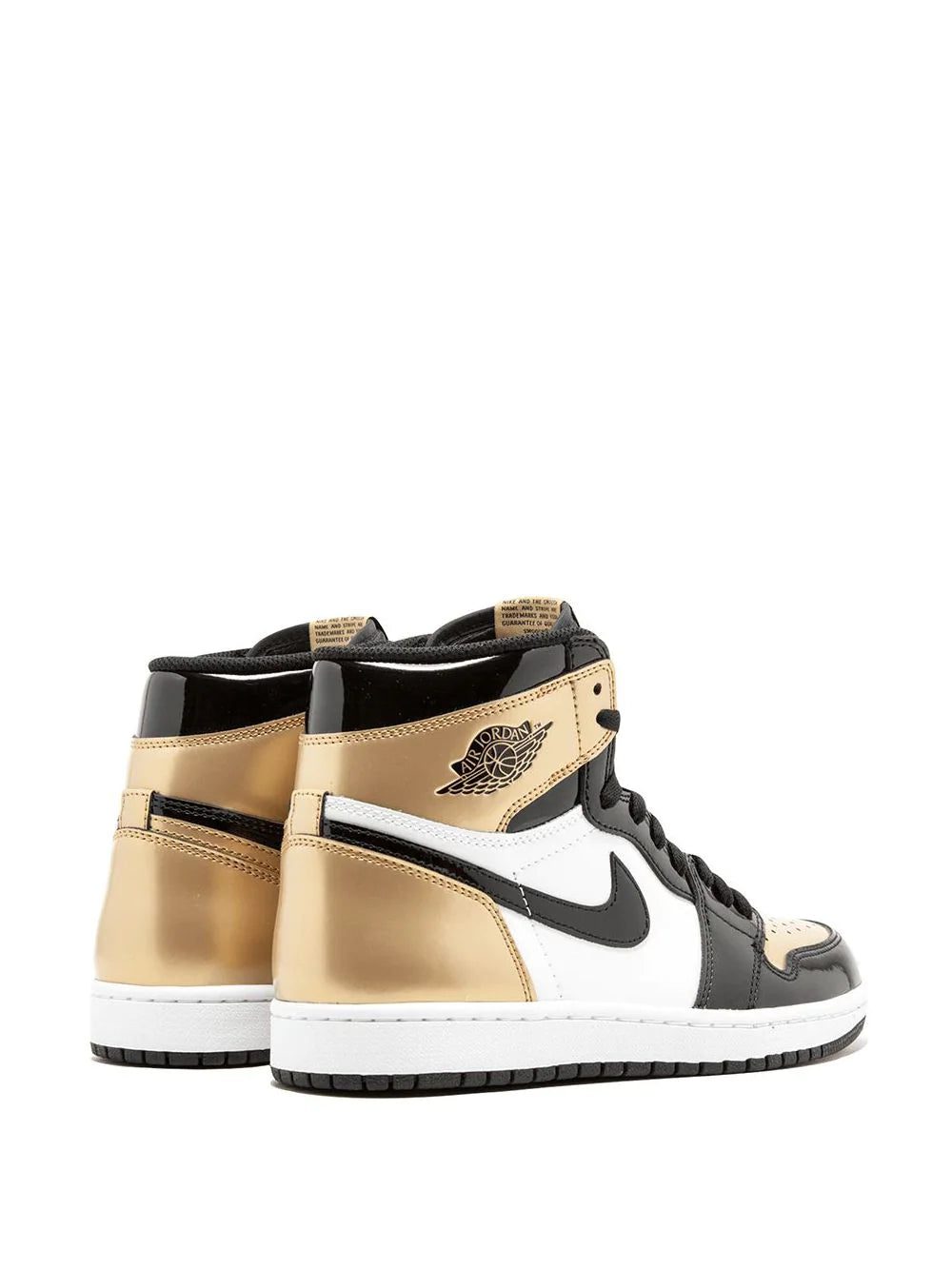 Supplied by a premier sneaker marketplace dealing with unworn, already sold out, in demand rarities. Each product is rigorously inspected by experienced experts guaranteeing authenticity. Released in 2019 for the NBA All-Star Weekend, the Air Jordan 1 Retro High "Gold Toe" sneakers from Jordan are a legendary remake of the classic. Finished with a summit gold toe cap and ankle panel, this high-top pair is not only a signature, but it's a highly-sought-after silhouette. Featuring a round toe, a flat rubber sole, a lace fastening, an ankle length, a signature Nike swoosh and an ankle length.