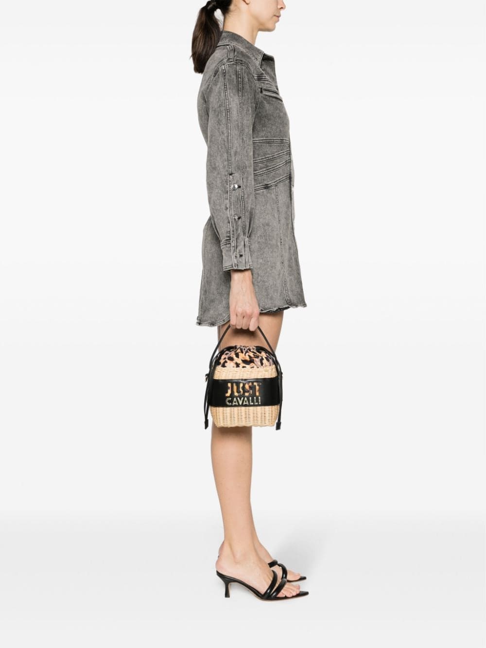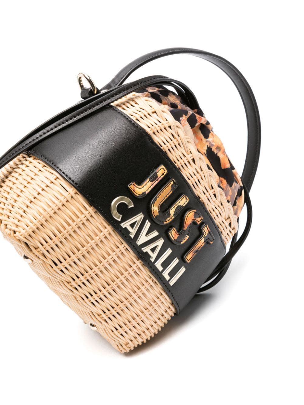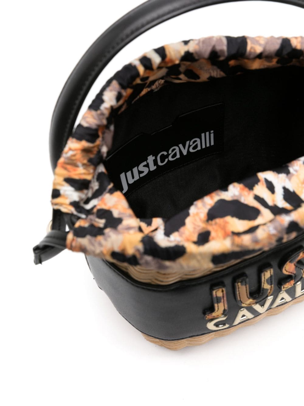 Just Cavalli basket-weave logo-embossed bucket bag
