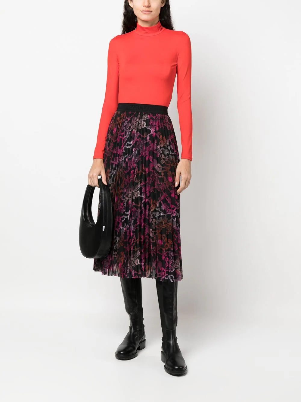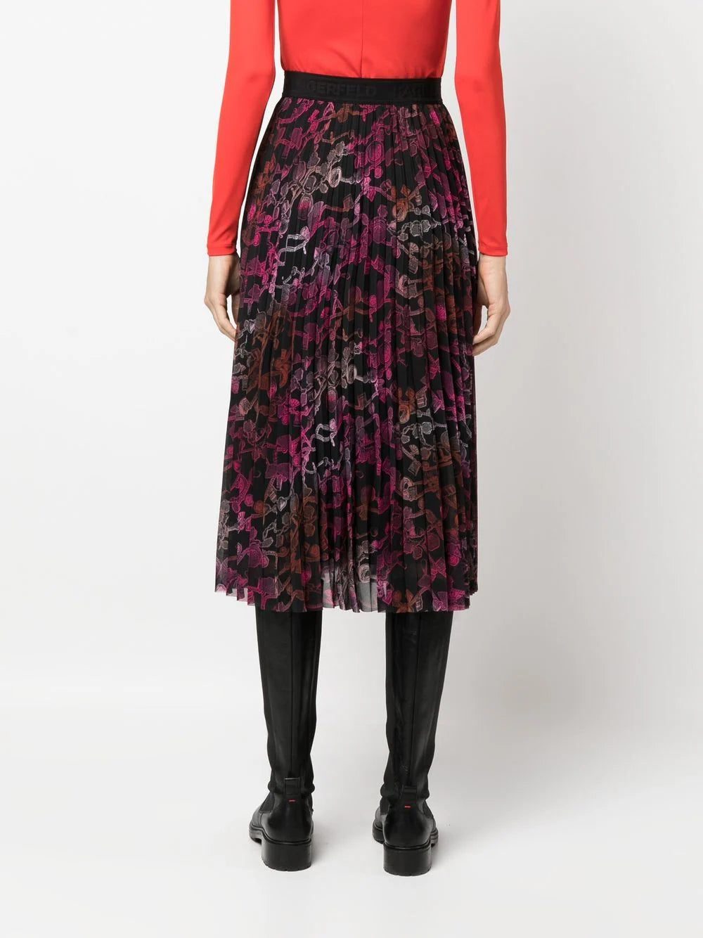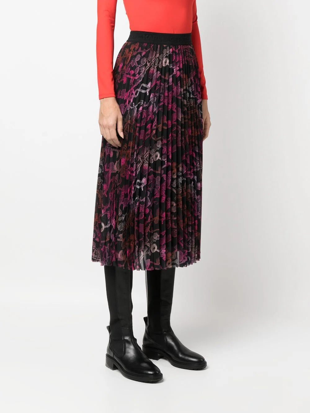 Karl Lagerfeld chain-print pleated midi skirt