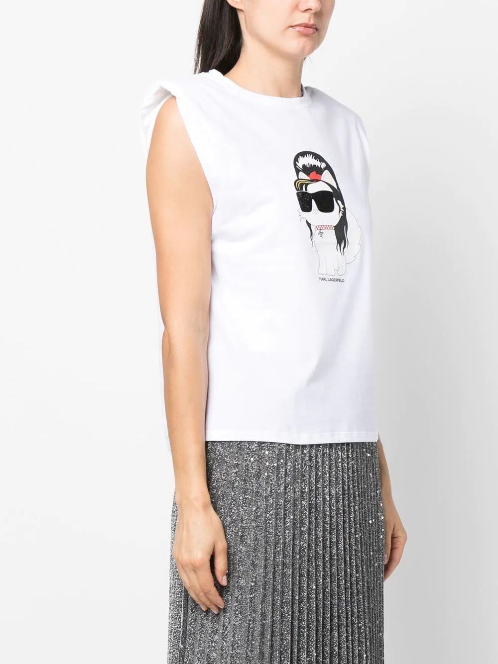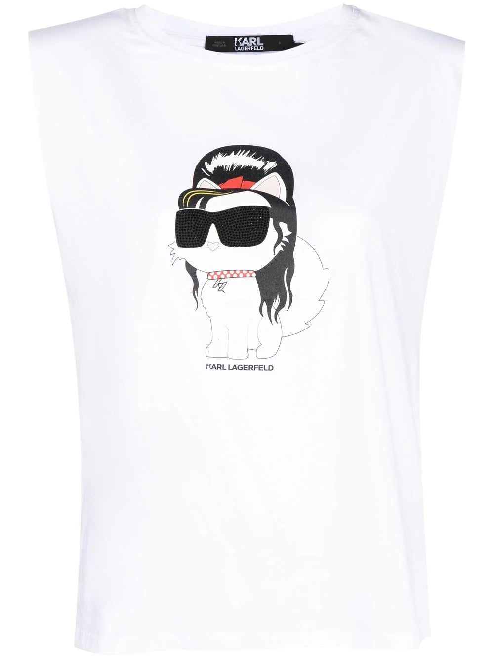 Choupette organic-cotton tank top from KARL LAGERFELD featuring white/multicolour, organic cotton, jersey knit, graphic print to the front, logo print to the front, round neck, sleeveless and straight hem. Conscious: This item is made from at least 50% organic materials.