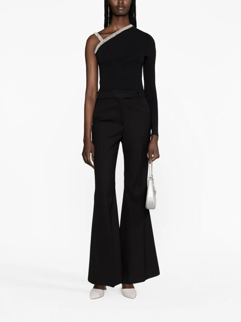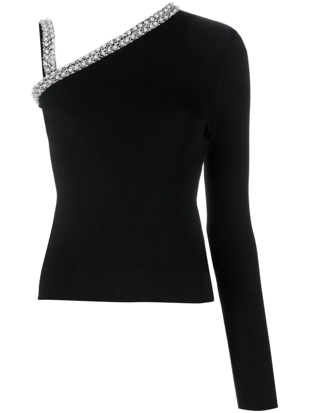 Obeying a polished aesthetic, this single-sleeved top from Karl Lagerfeld stands out with delicate faux-pearl and bead embellishments adorning the one-shoulder silhouette.