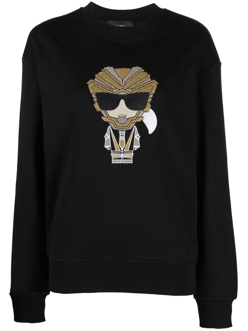 Adorned with Karl Lagerfeld's 'Hero Ikonik Karl' artwork, this organic cotton sweatshirt features a superhero-inspired reworking of the instantly recognisable Ikonik Karl. Presented in a metallic palette and finished with a small logo to the rear, this design showcases the brand's penchant for bold branding.