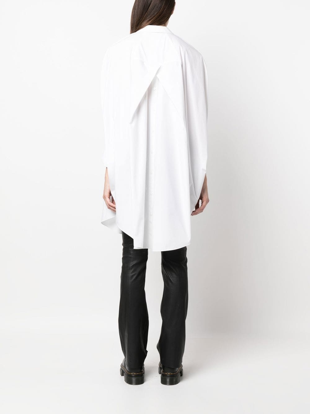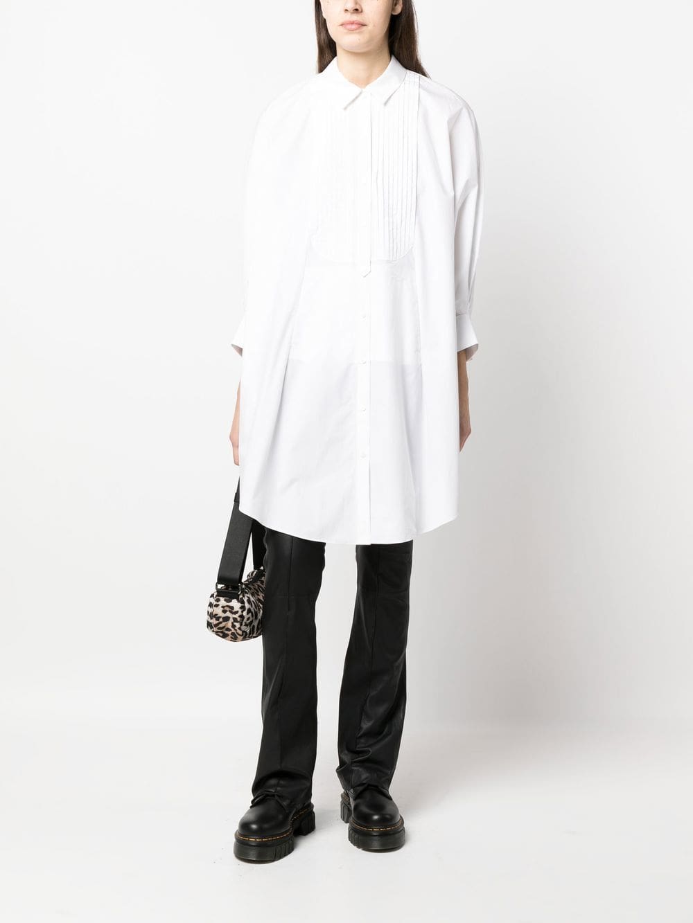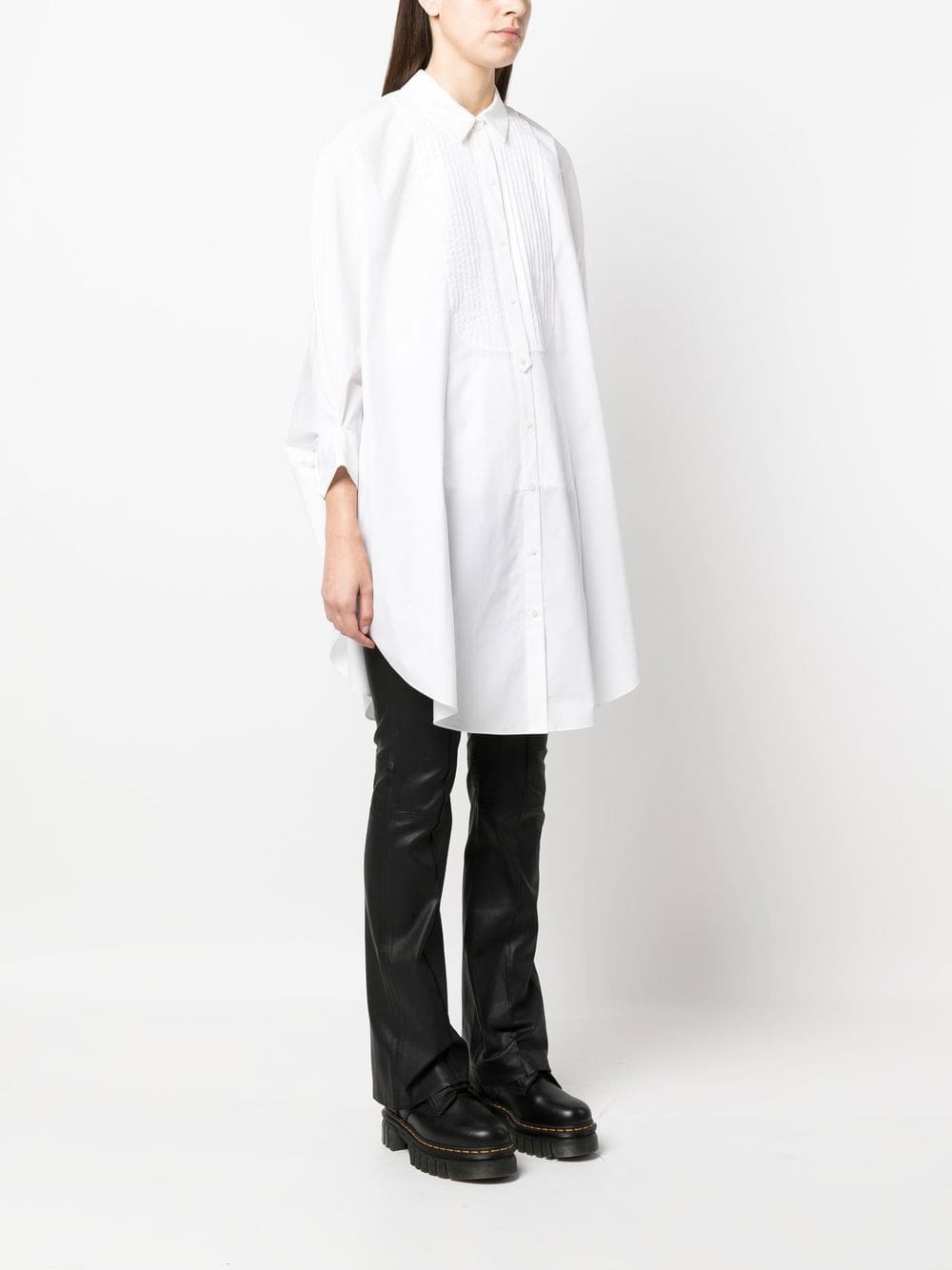 white organic cotton pleat detailing classic collar front button fastening long sleeves buttoned cuffs curved hem Conscious: This item is made from at least 50% organic materials