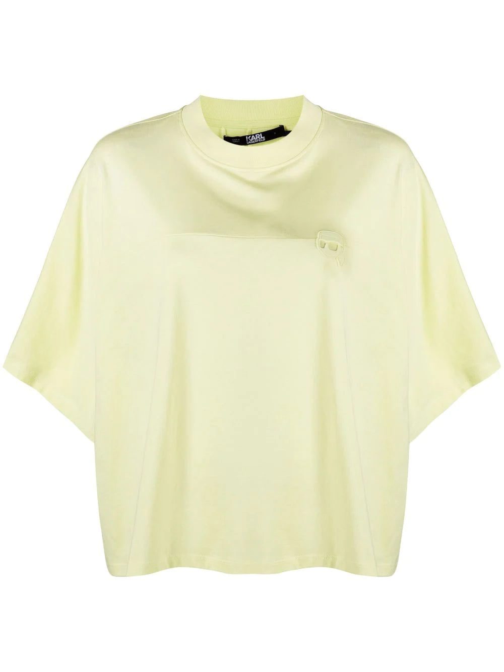 Detailed with a tonal Karl Ikonik motif at the chest, this light-green T-shirt from Karl Lagerfeld is a subtle tribute to the late designer. Crafted from organic cotton, it is cut for a draped, boxy style.