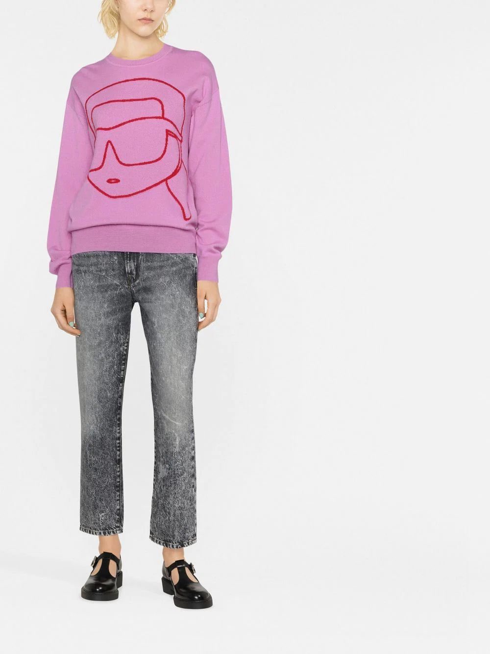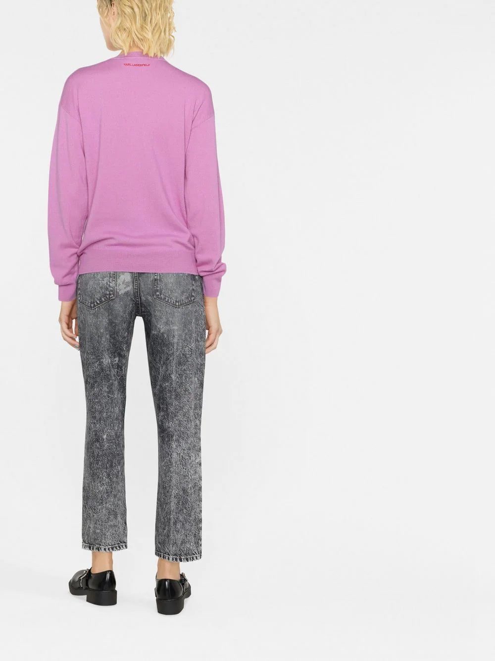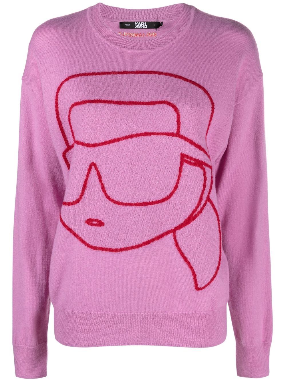 Instantly recognisable, this merino sweater presents an outlined Karl to the front of its design. The rich pink colourway brings the red motif to focus, offering a tribute to the founder of the house, Karl Lagerfeld.