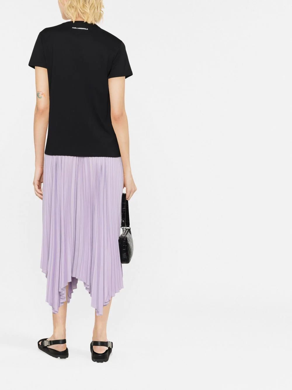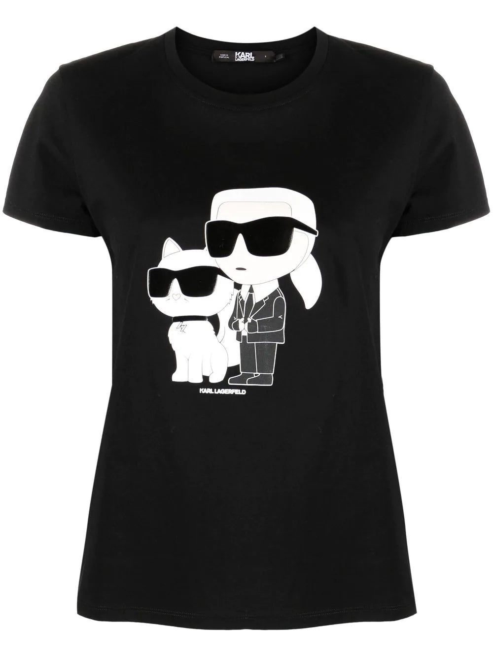 An iconic duo, the German designer Karl Lagerfeld and his cat are seen in an animated form at the front of this sweatshirt from the house's AW22 collection. The playful motif celebrates the legacy of the founder of the house whilst making garments instantly recognisable.