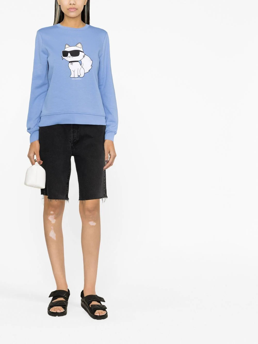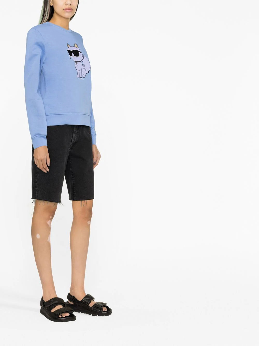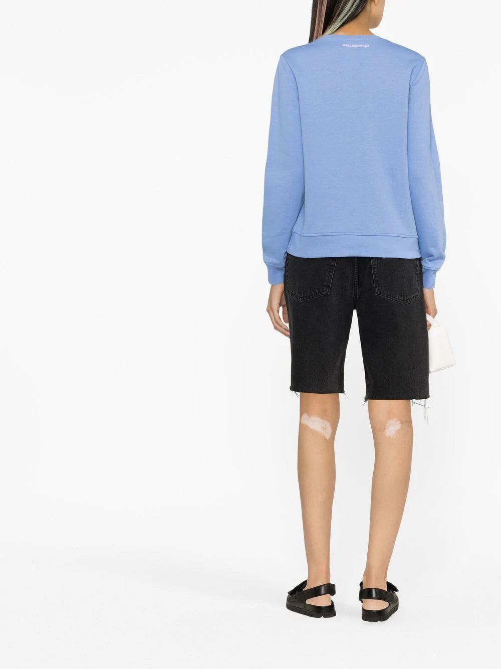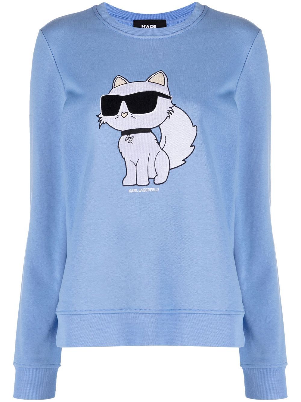 Ikonik Karl-print crew neck sweatshirt from KARL LAGERFELD featuring sky blue, organic cotton blend, signature Ikonik Karl motif, crew neck, long sleeves and ribbed cuffs and hem. Conscious: This item is made from at least 50% organic materials.