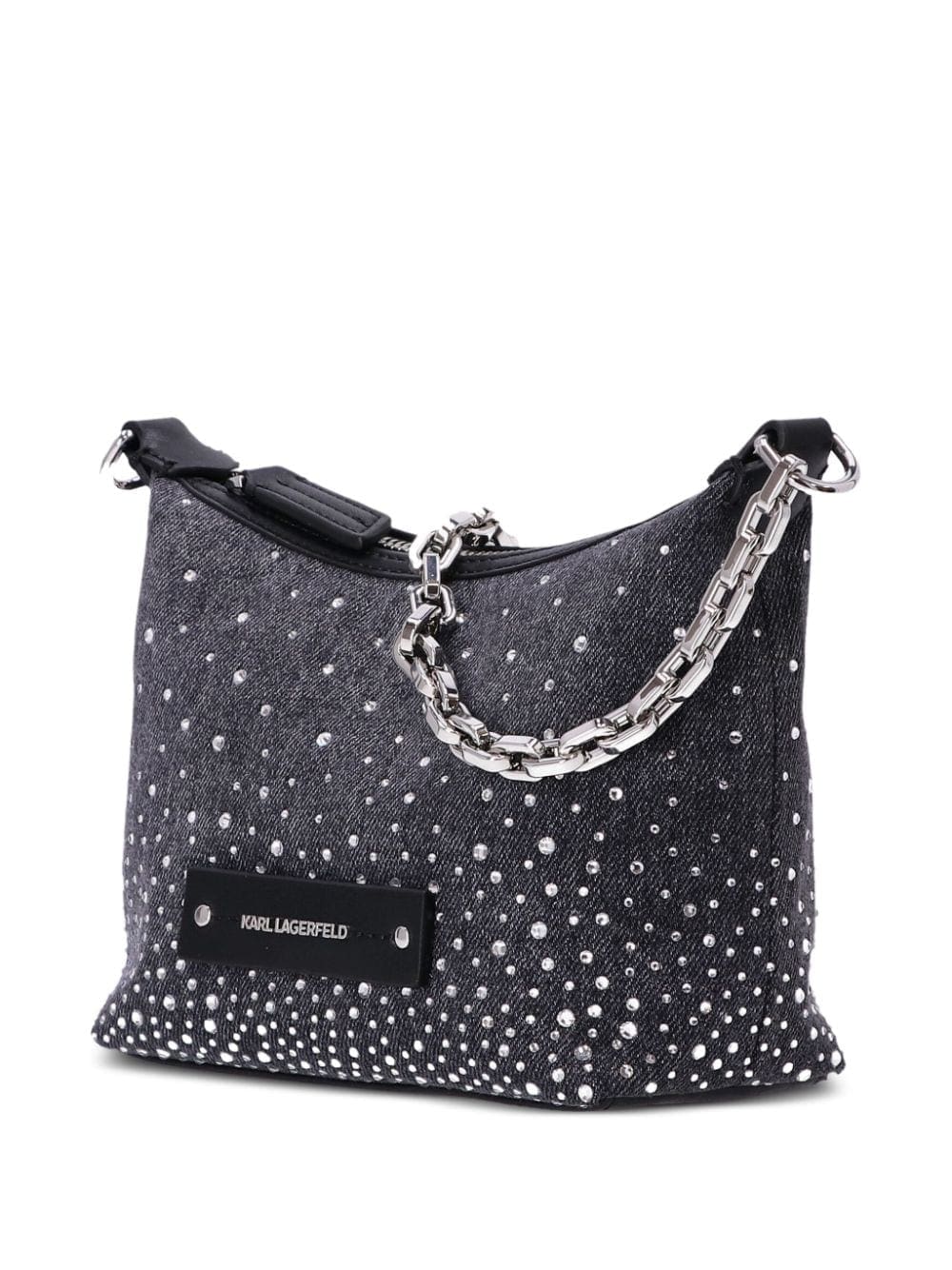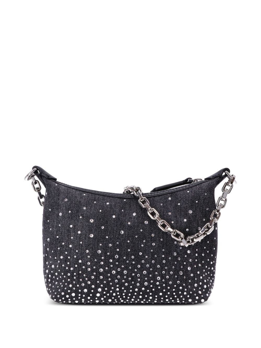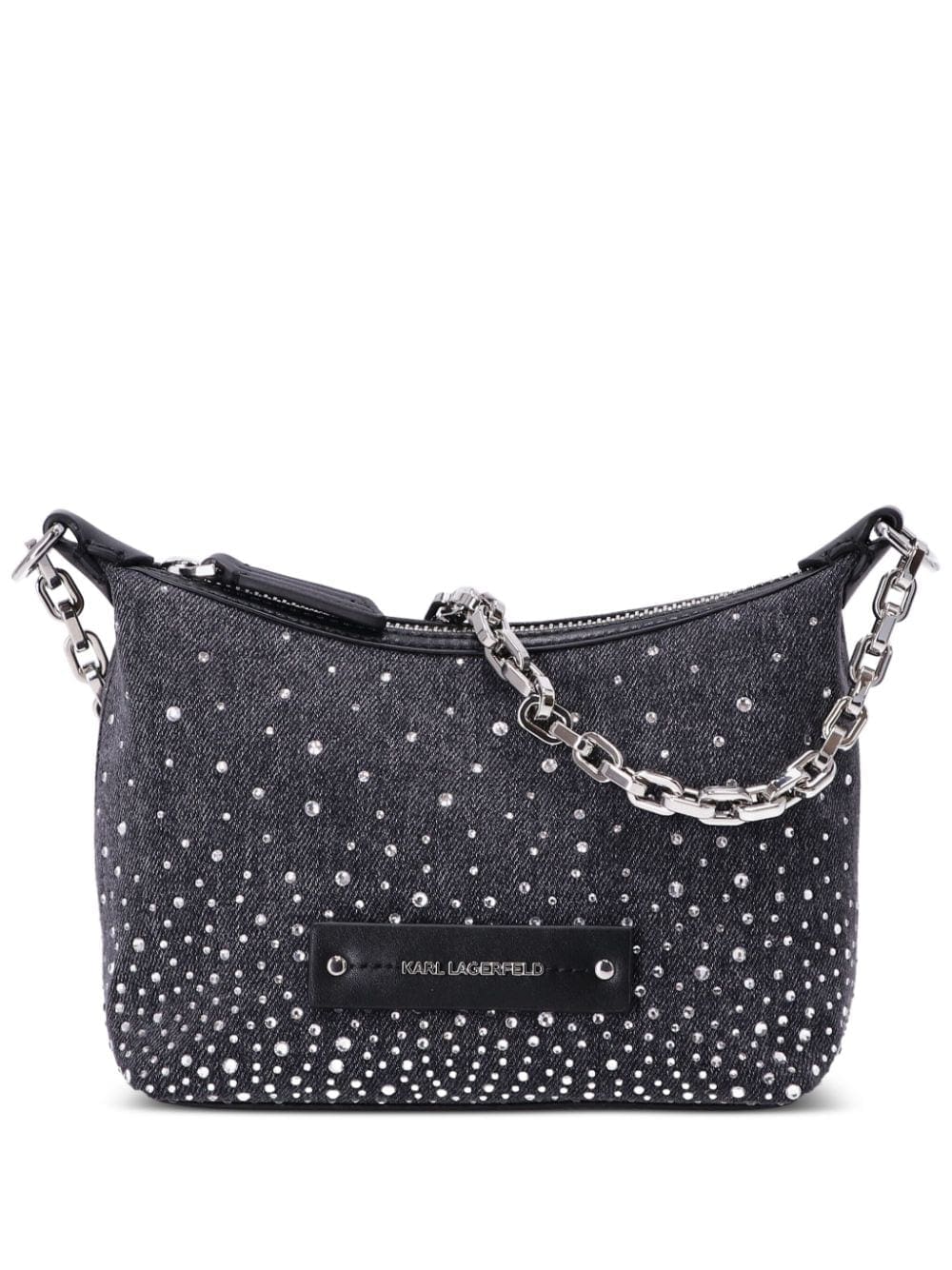A dazzling creation, Karl Lagerfeld's grey K/Evening mini bag is fit for a night out. Its denim base is embellished with white crystals, evoking a radiating look. Silver-tone hardware compounds the overall shine, while a logo appliqué makes it unmistakable.
