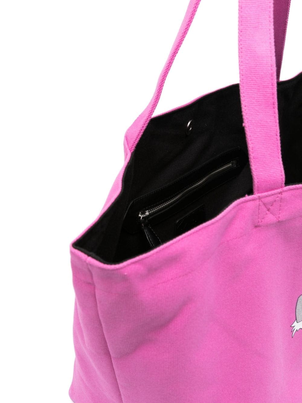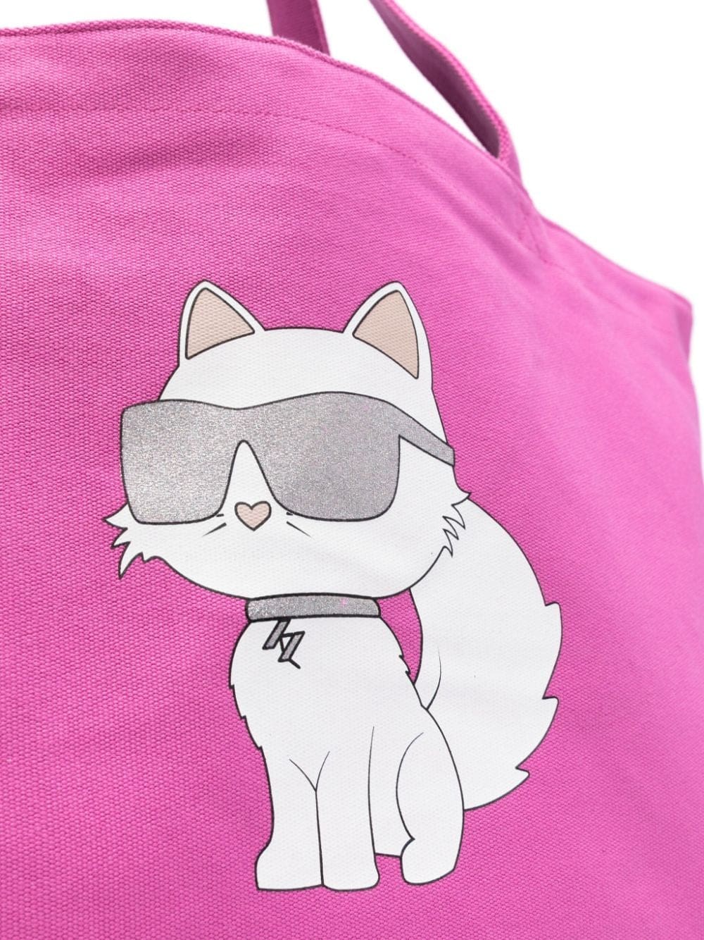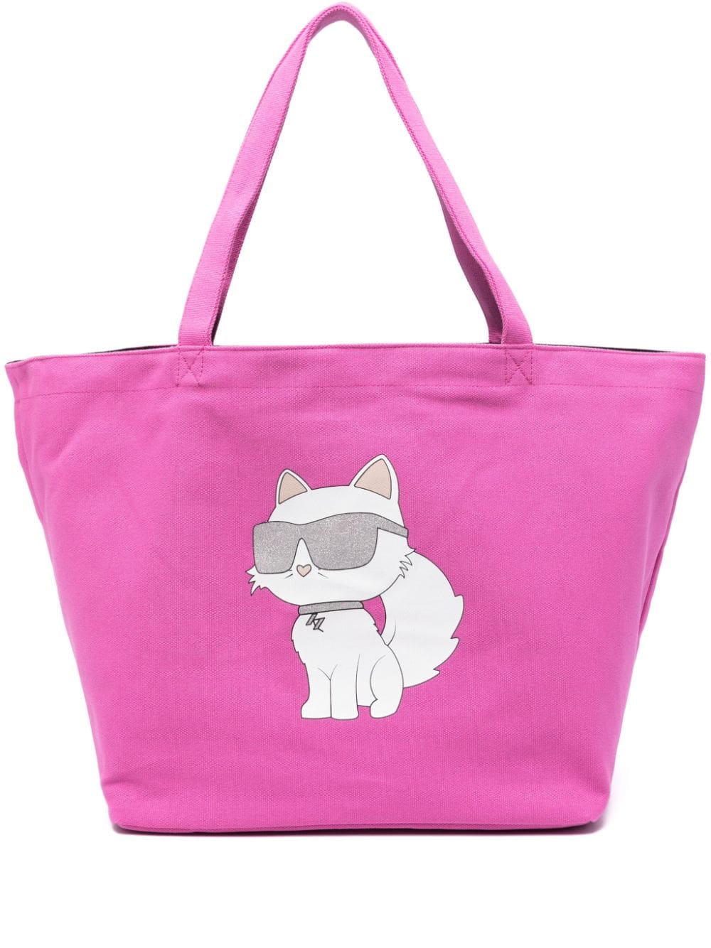 This K/Ikonik 2.0 Choup tote bag pays tribute to Karl Lagerfeld's pet chat, Choupette. It's crafted from a blend of recycled cotton yarns in a fuchsia-pink hue with long top handles and a capacious interior compartment.