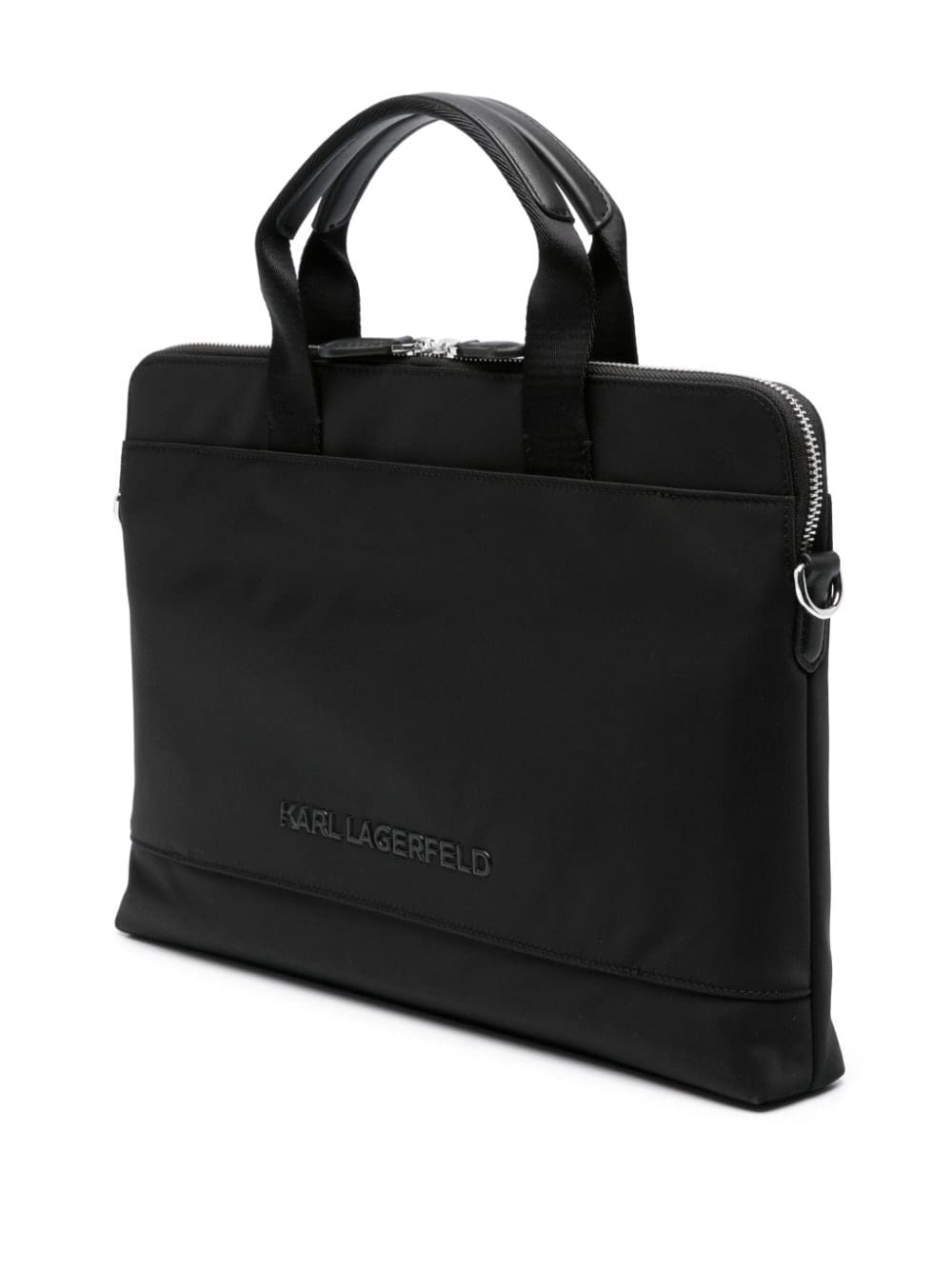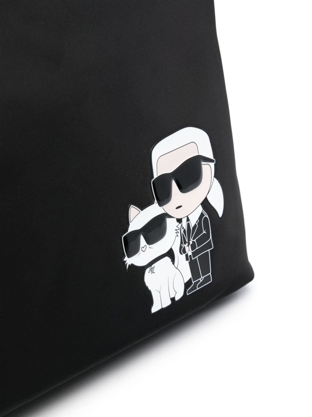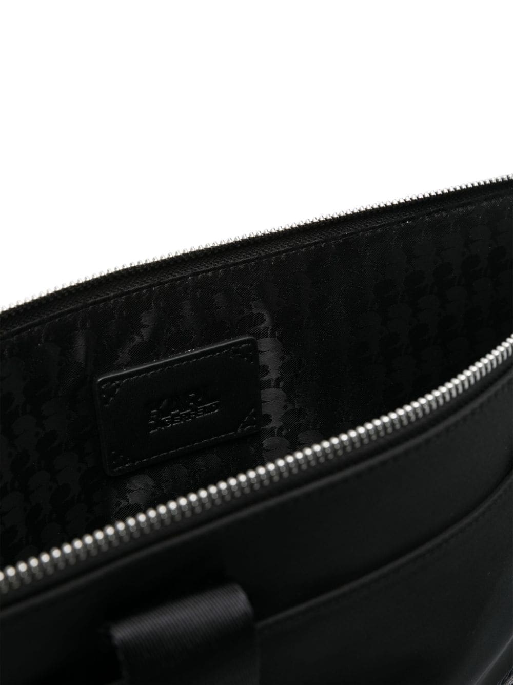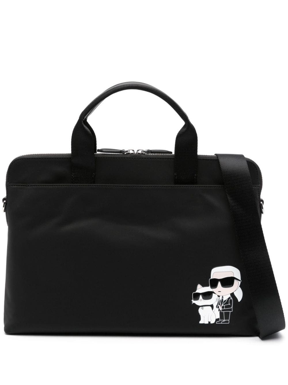 A practical style with signature charm, this black K/Ikonik laptop bag is made from protective cushioned neoprene with an appliqué of the industry icon and his cat Choupette that’s inspired by the NFT collection. A detachable shoulder strap and front slip pocket reinforce its functionality.