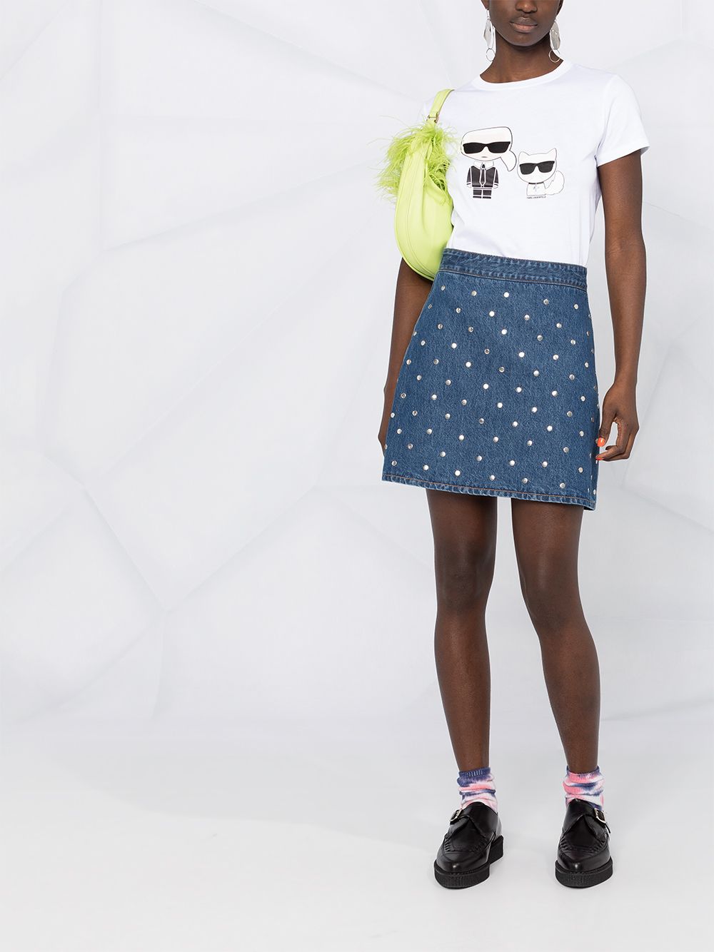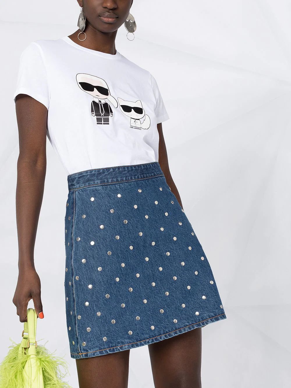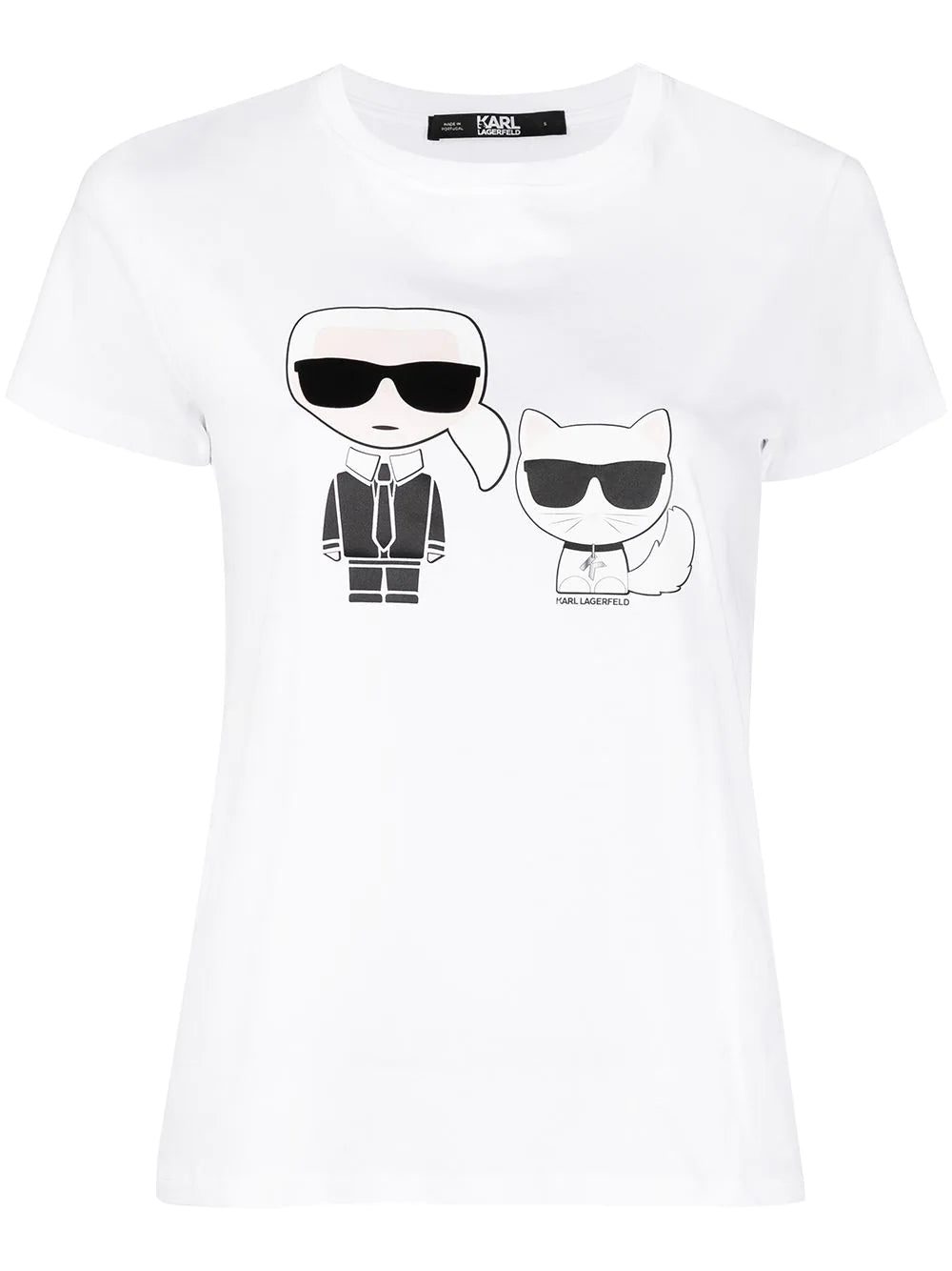 White cotton Karl Lagerfeld print T-shirt from KARL LAGERFELD featuring round neck, short sleeves, straight hem and graphic print.