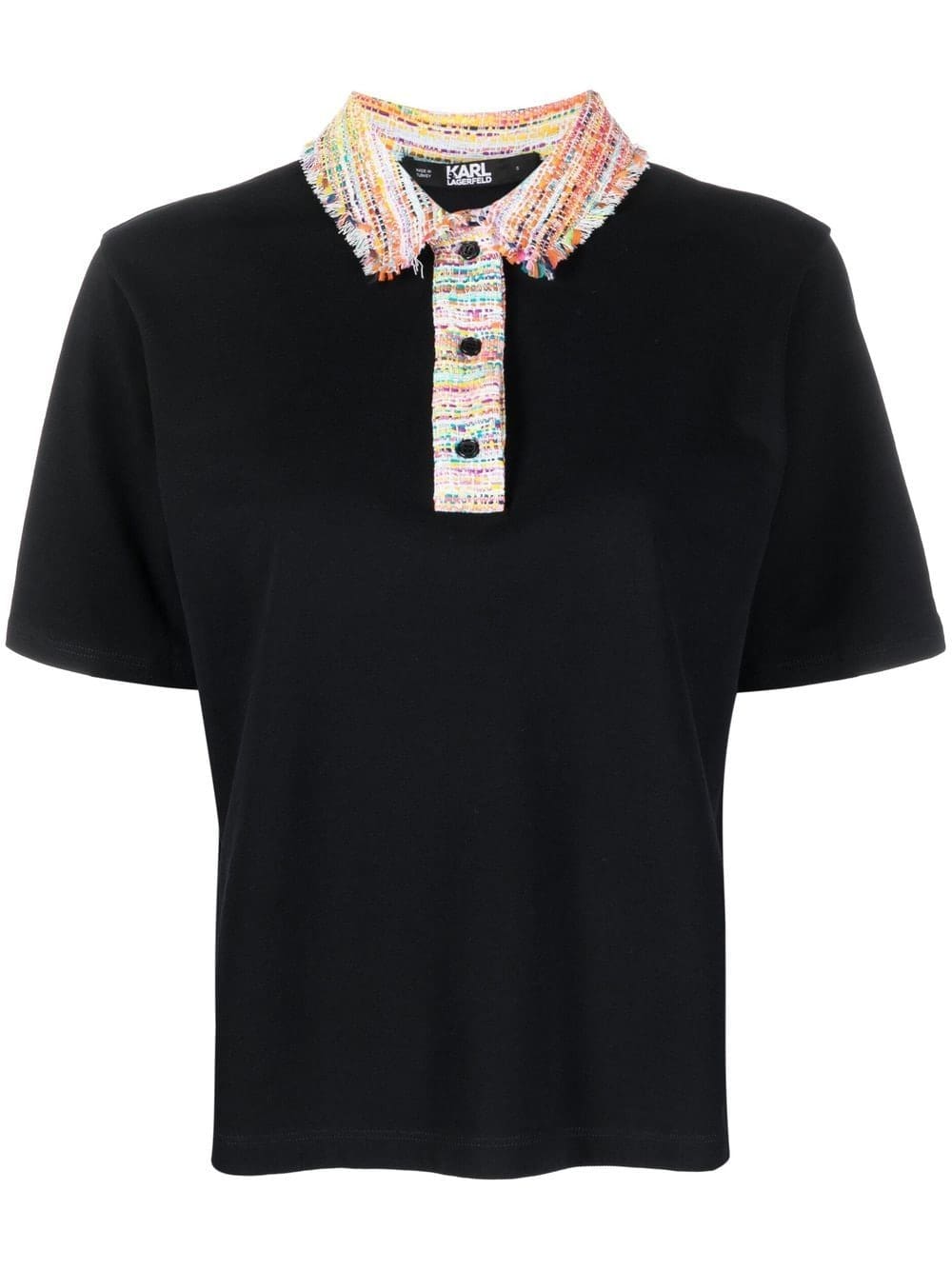 black/multicolour organic cotton polo collar short front button fastening short sleeves straight hem Conscious: This product contains organic cotton where the cultivation and manufacturing process restricts the use of chemicals, eliminates pesticides or artificial fertilisers and incorporates methods that respect biodiversity, improve soil quality, and reduce water consumption.