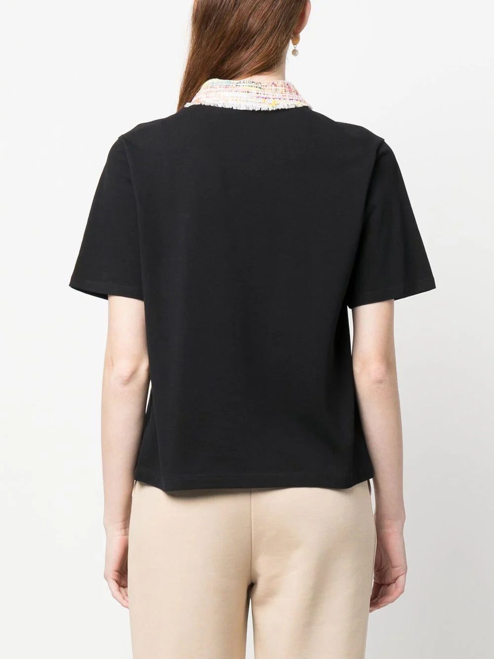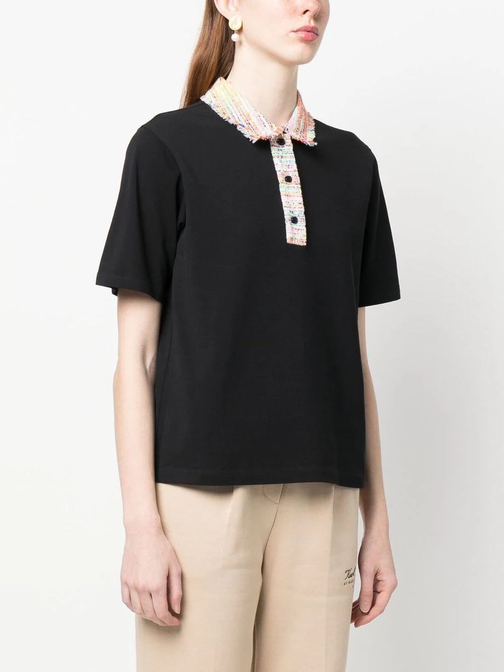 knitted-collar polo top from KARL LAGERFELD featuring black/multicolour, organic cotton, polo collar, short front button fastening, short sleeves and straight hem. Conscious: This product contains organic cotton where the cultivation and manufacturing process restricts the use of chemicals, eliminates pesticides or artificial fertilisers and incorporates methods that respect biodiversity, improve soil quality, and reduce water consumption..